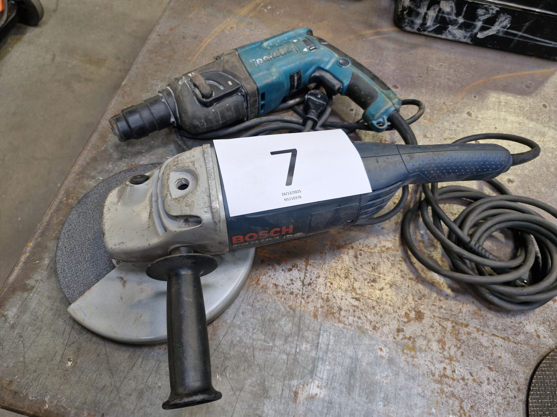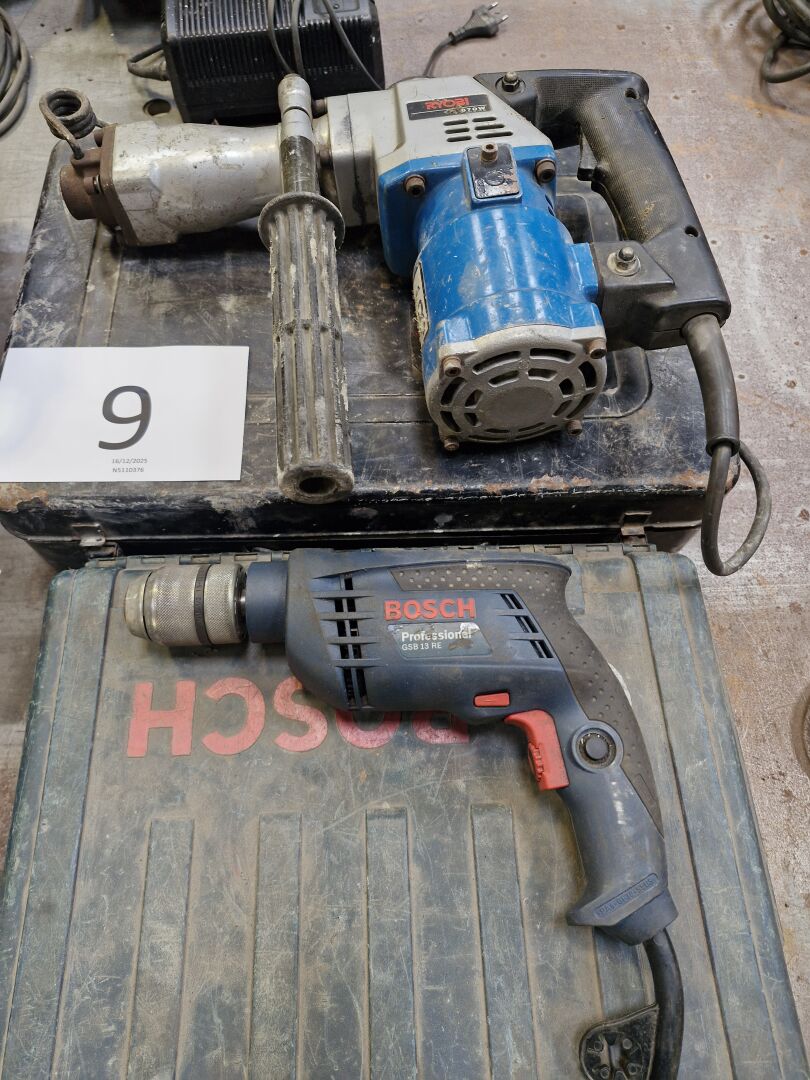 1 perforateur BOSCH GBH-2-26 RE + 1 perforateur BOSCH GSB 13 RE dans leur coffret + 1 meuleuse...