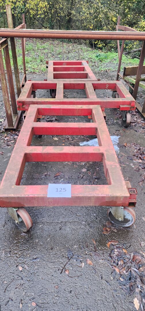 3 chariots de manutention charges lourdes rouges 150 x 95 cm et 1 vert 150 x 78 cm