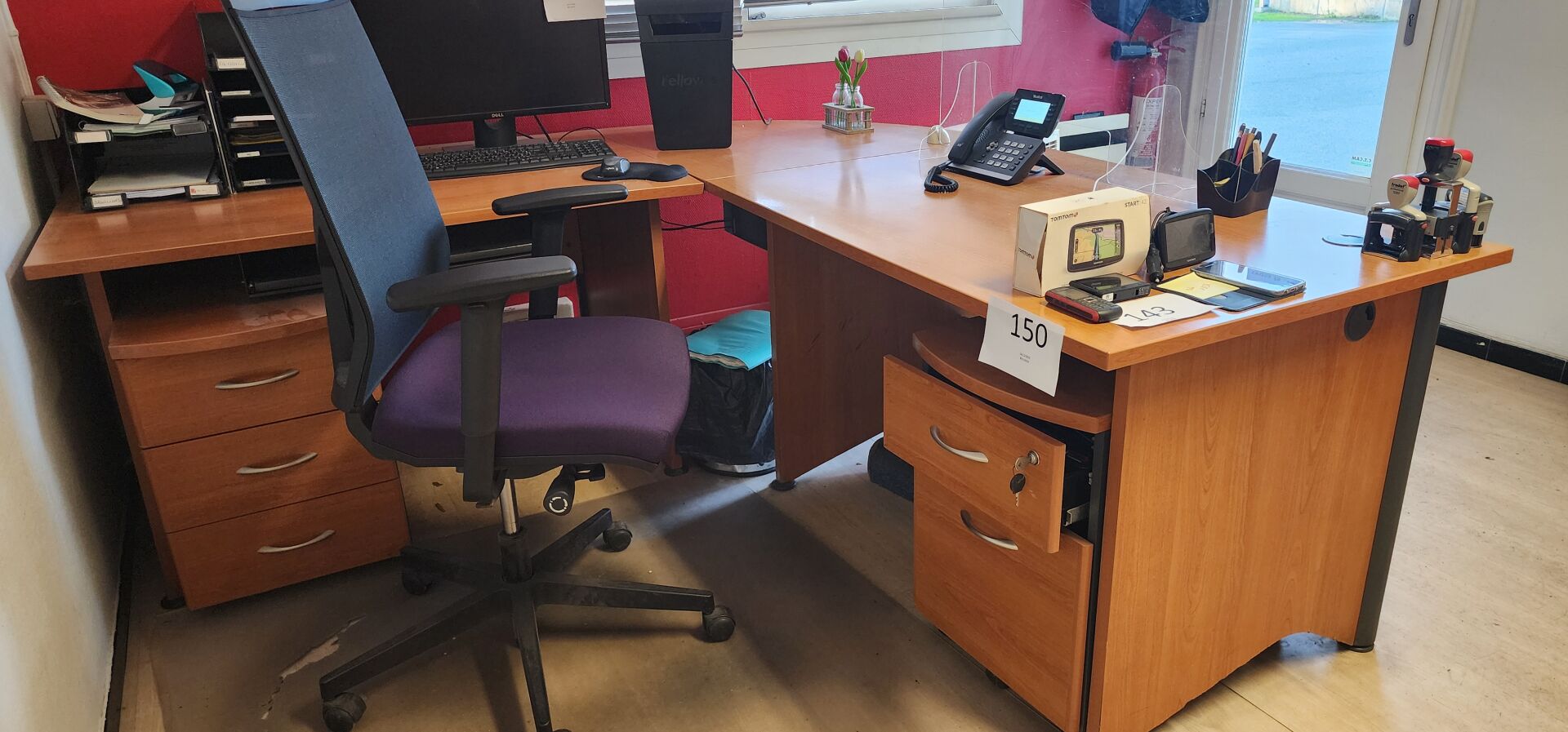 1 bureau métal et mélaminé bois avec retour et 2 caissons mobiles assortis 200 x 200 cm