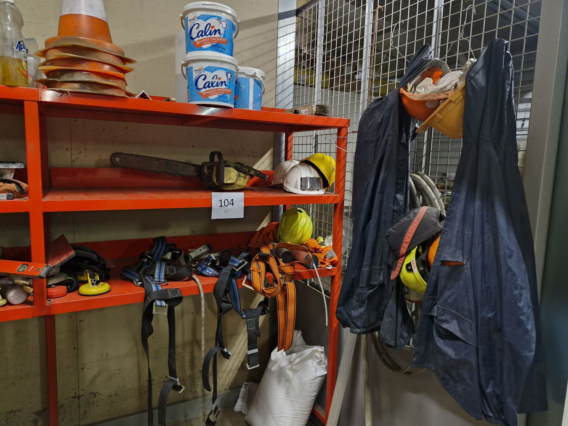 1 petit lot d’EPI comprenant : harnais, casques, ventouses, plots, escabeau alu/PVC 3...
