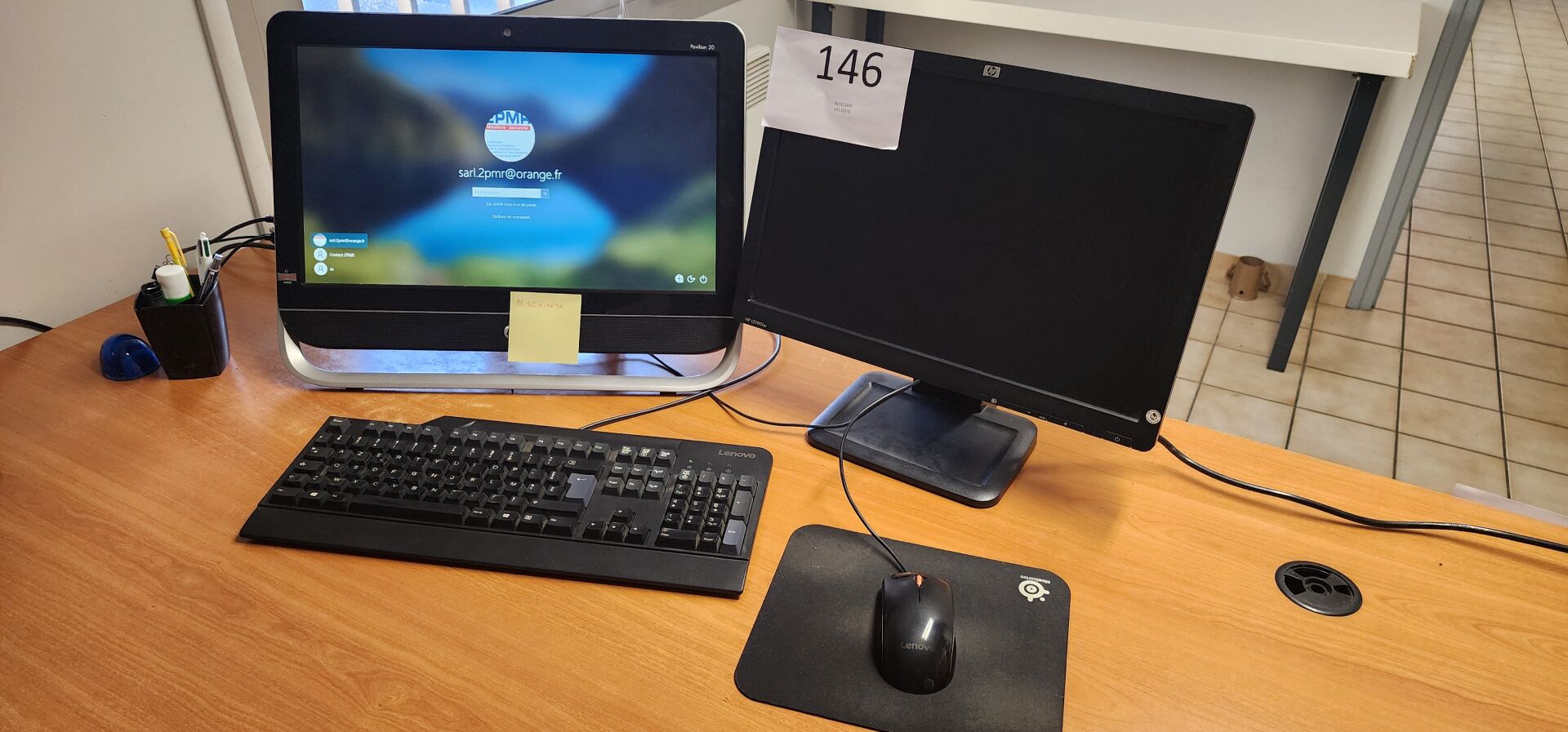 1 ordinateur tout-en-un HP Pavilion 20 sous Windows 10 famille, 1 écran H.P 19 pouces (mdp...