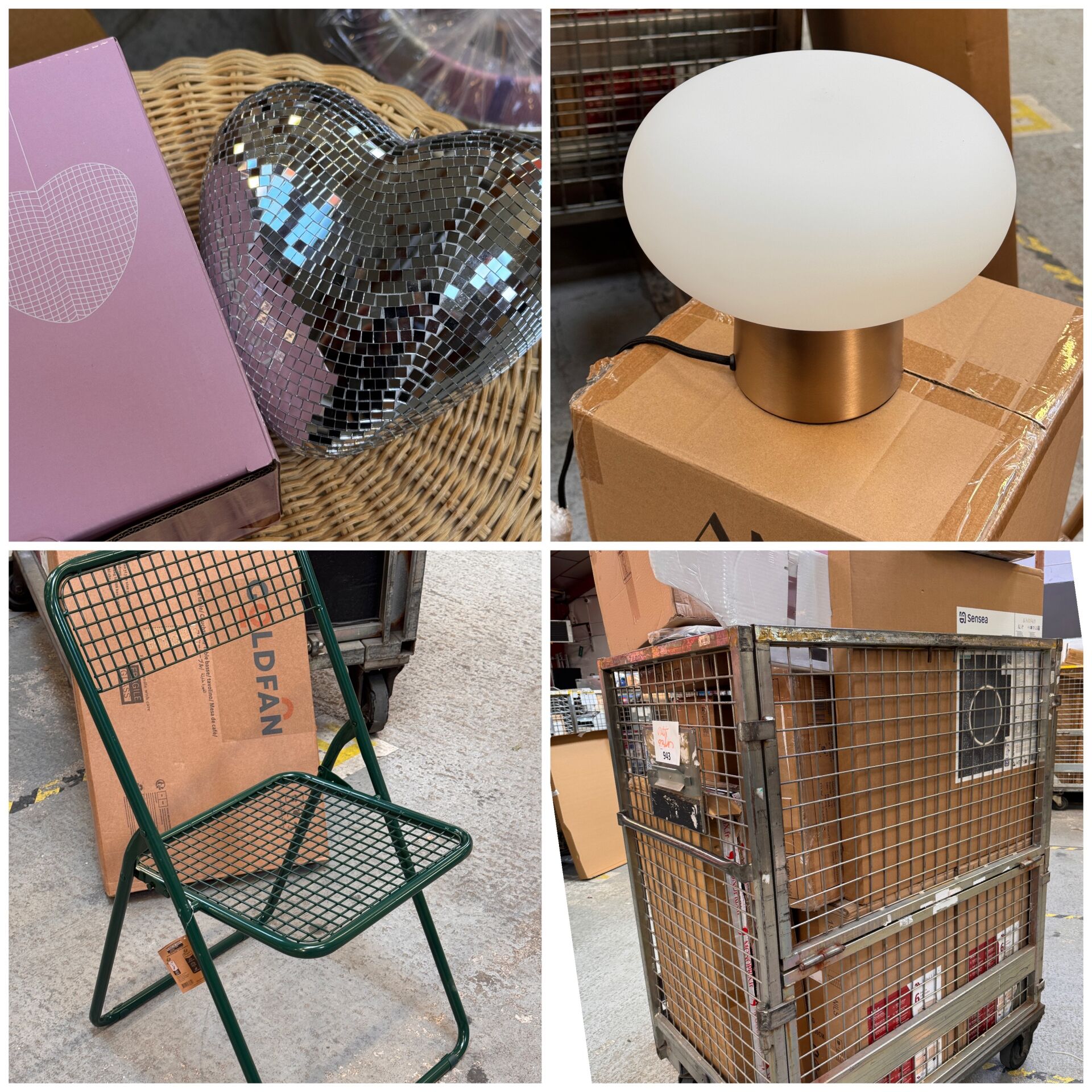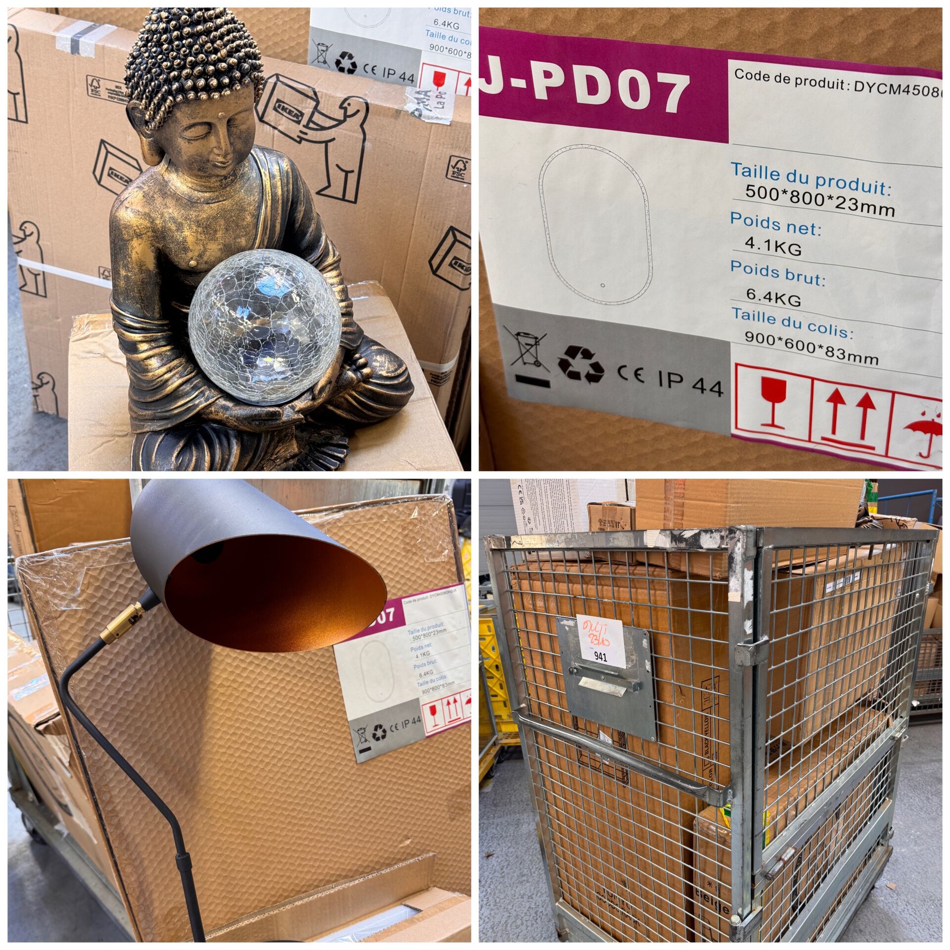 FORT ENSEMBLE DE PETITS MOBILIERS ET DECORATIONS (environ 1m3) DONT LUMINAIRES, VERRERIE, TABLE,...