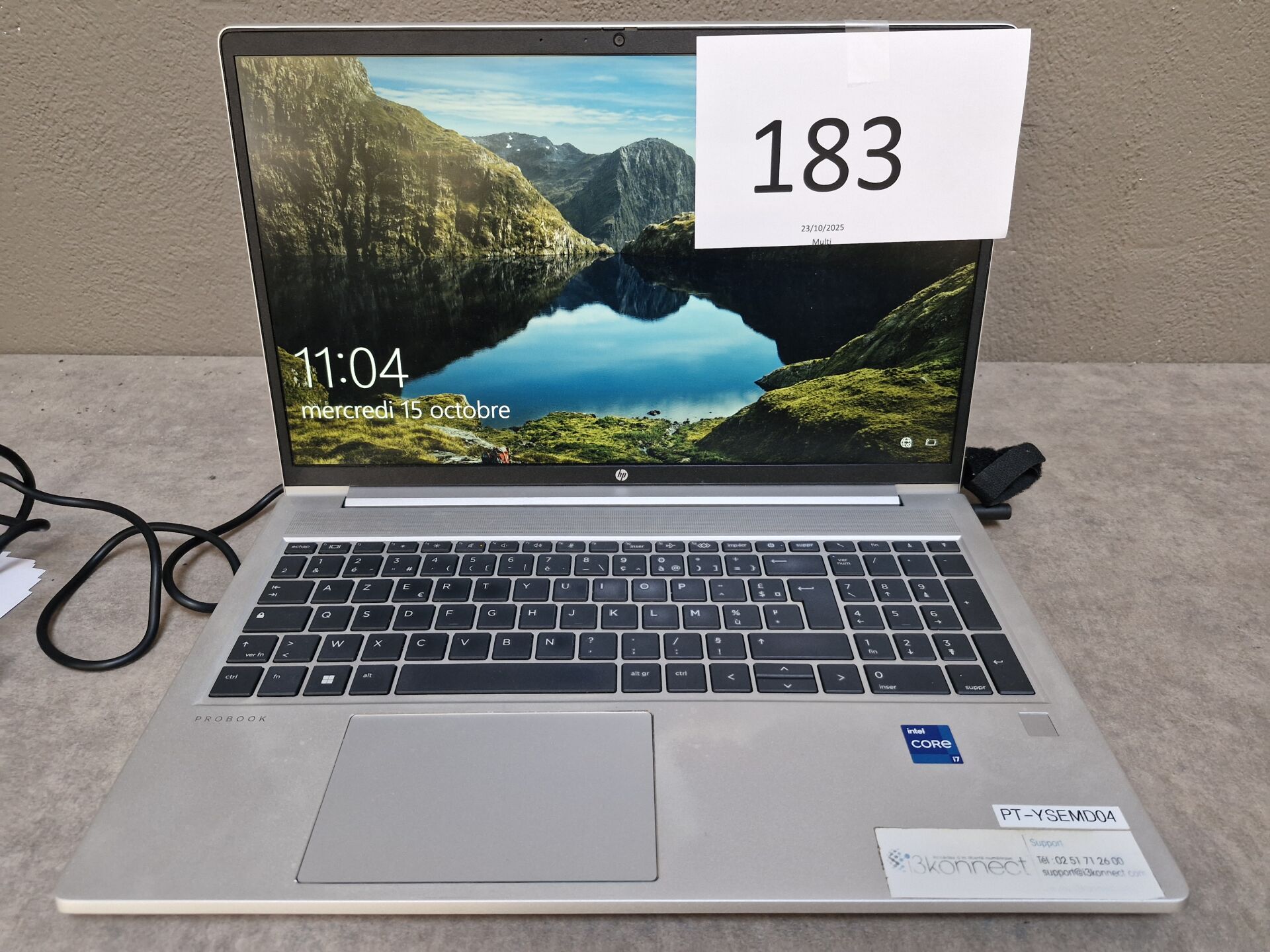 1 ordinateur portable HP ProBook 450 G9 Core i5 – S/N : 5CD2317J5R (sans chargeur) mdp...