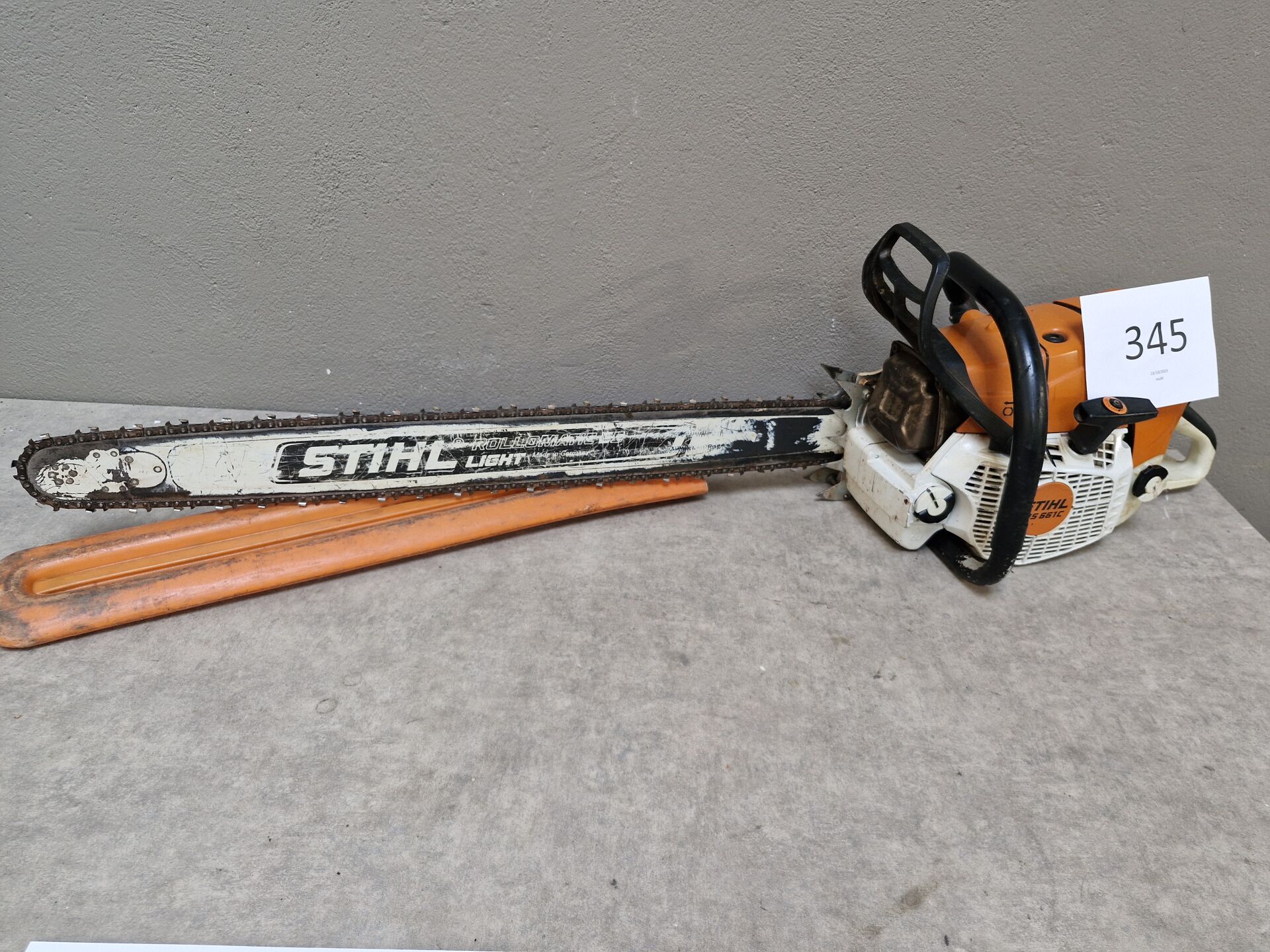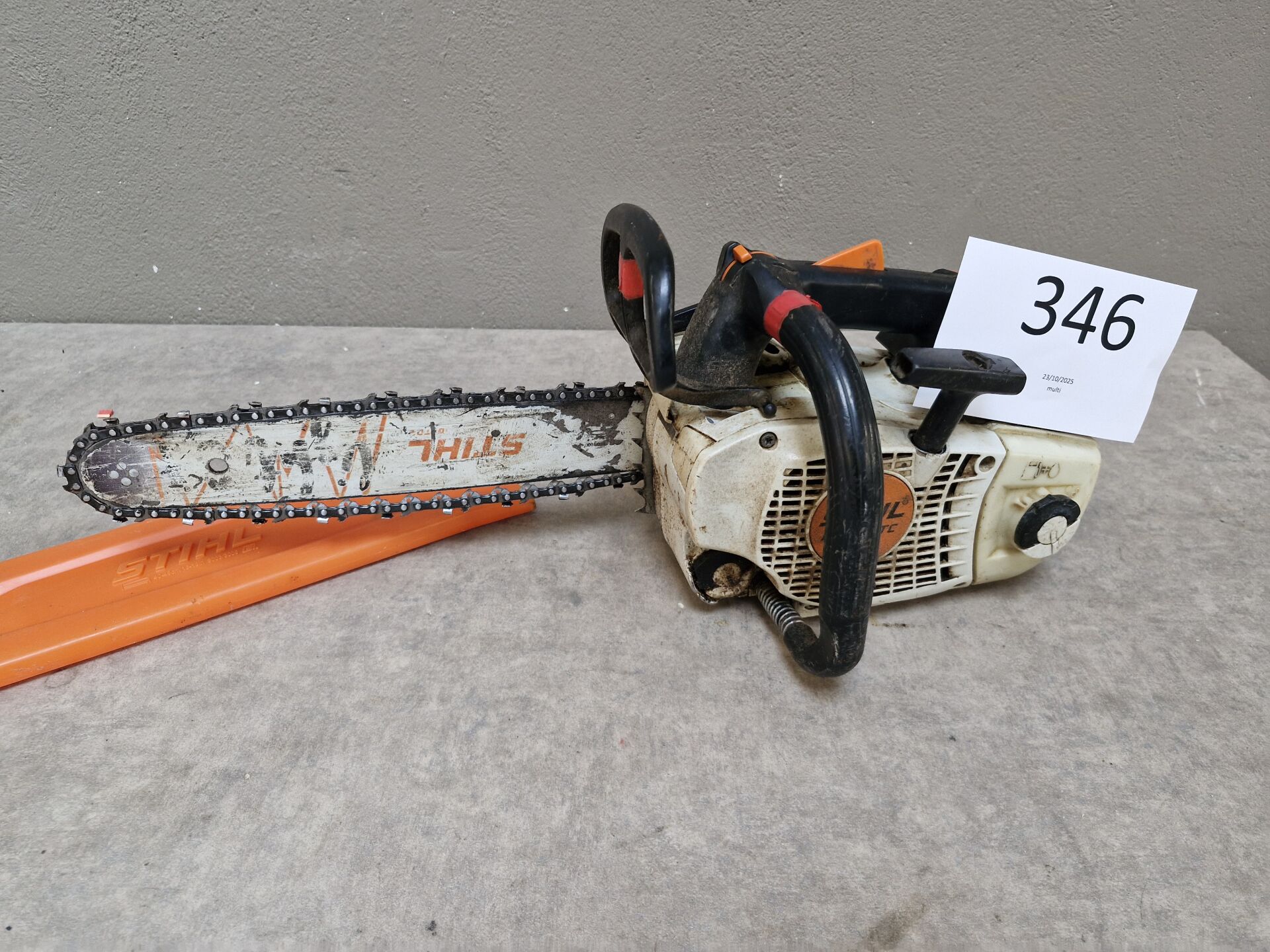 Dans une caisse et 1 seau : 1 ensemble de guides de tronçonneuse et de chaines différents...