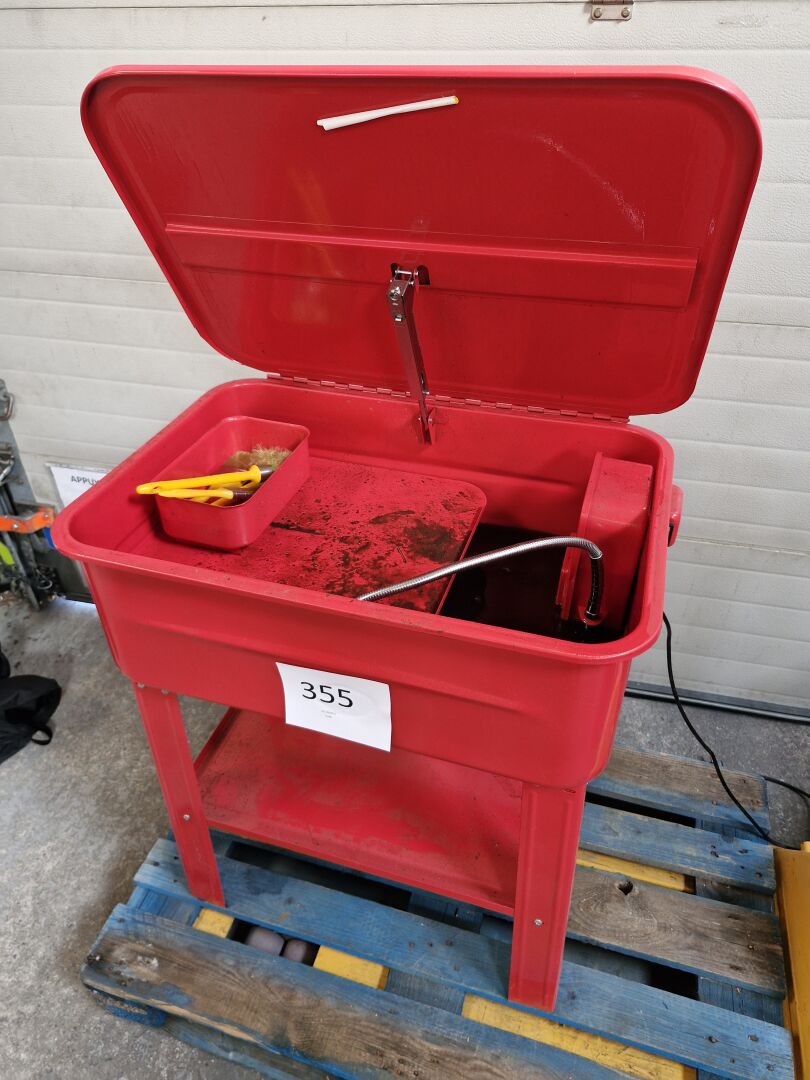 1 fontaine de nettoyage électrique métal rouge avec liquide à l’intérieur + 1 pompe...