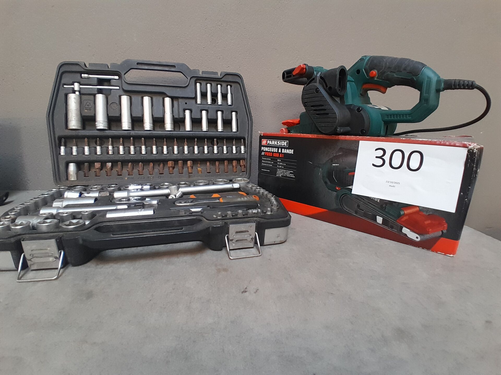 1 ponceuse à bande PARKSIDE PBSD 600 A1 + 1 coffret de clés à cliquet MONSIEUR BRICOLAGE