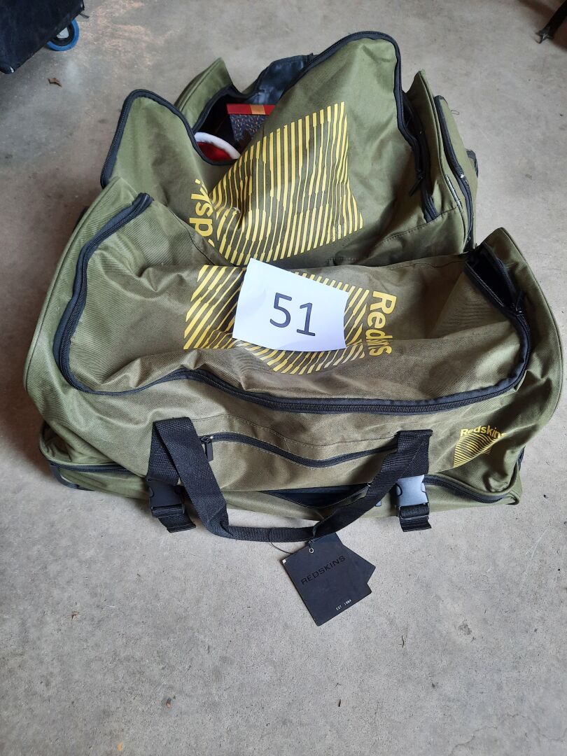 2 sacs de sport en toile verte REDSKINS dont un contenant des décorations de Noël