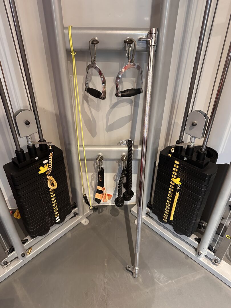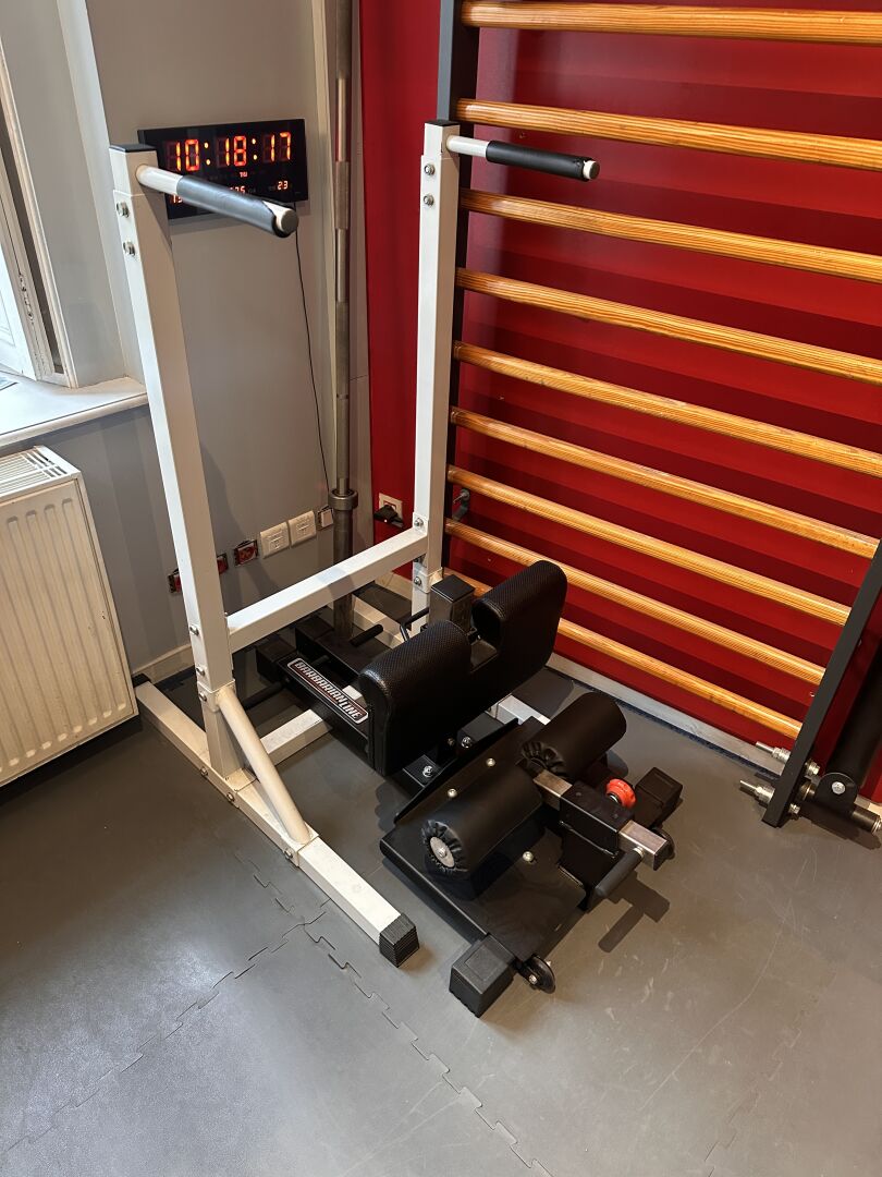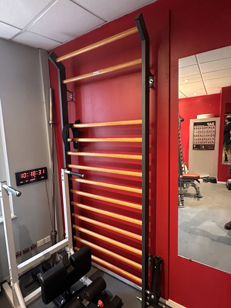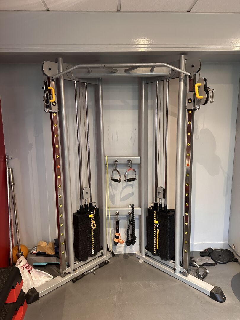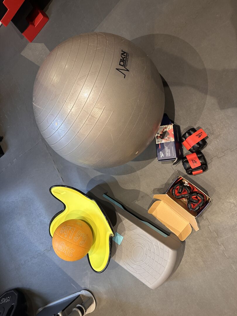 Banc de musculation et de traction et divers accessoires sans marque ni modèle apparents.
