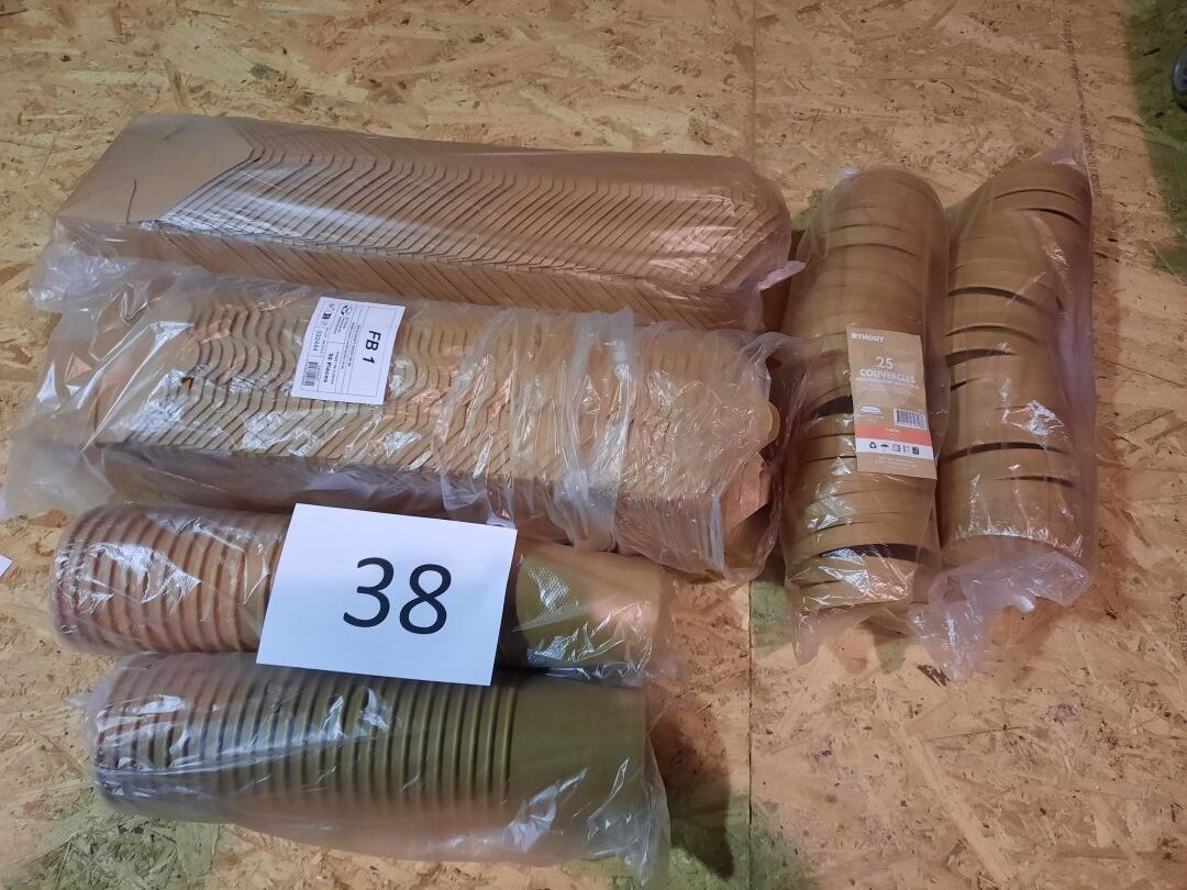 Petit lot d’emballages pour plats à emporter dont pots à soupes avec couvercles et boites...