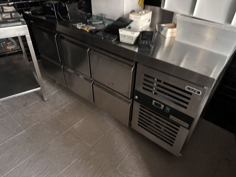 Tour réfrigéré à moteur intégré GGM GASTRO, ouvrant à 3 portes, bâti inox, plateau granit...