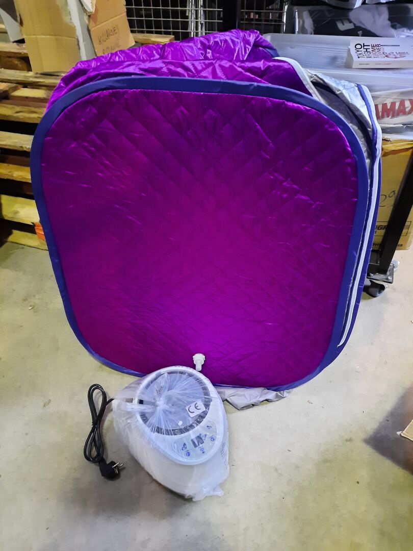 7 saunas portables démontés en caisse pvc noir, incomplet