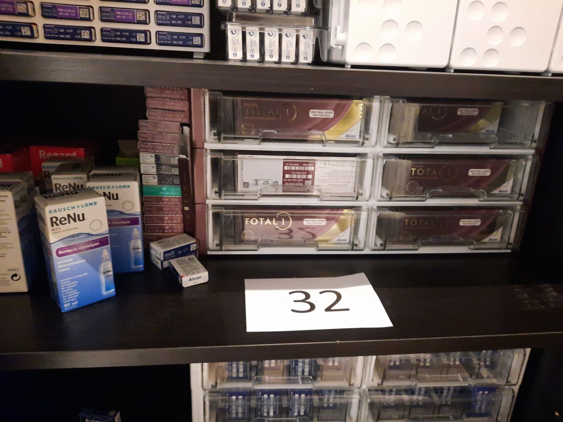 Stock de lentilles de contact et produits pour lentille de contact dont ALCON, 1-DAY ACUVUE,...