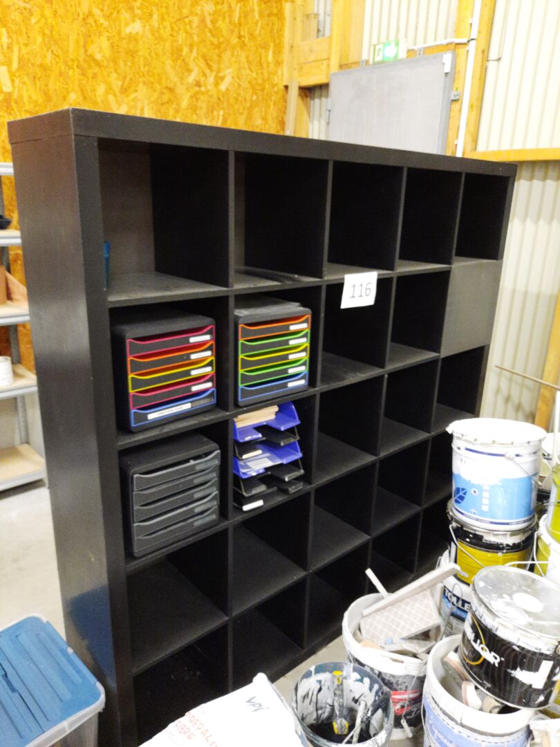 Étagère en mélaminé noir, 25 cases 185x185x39 cm