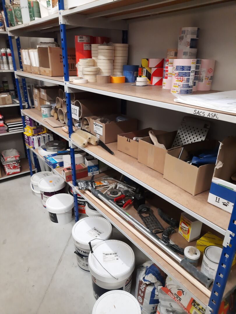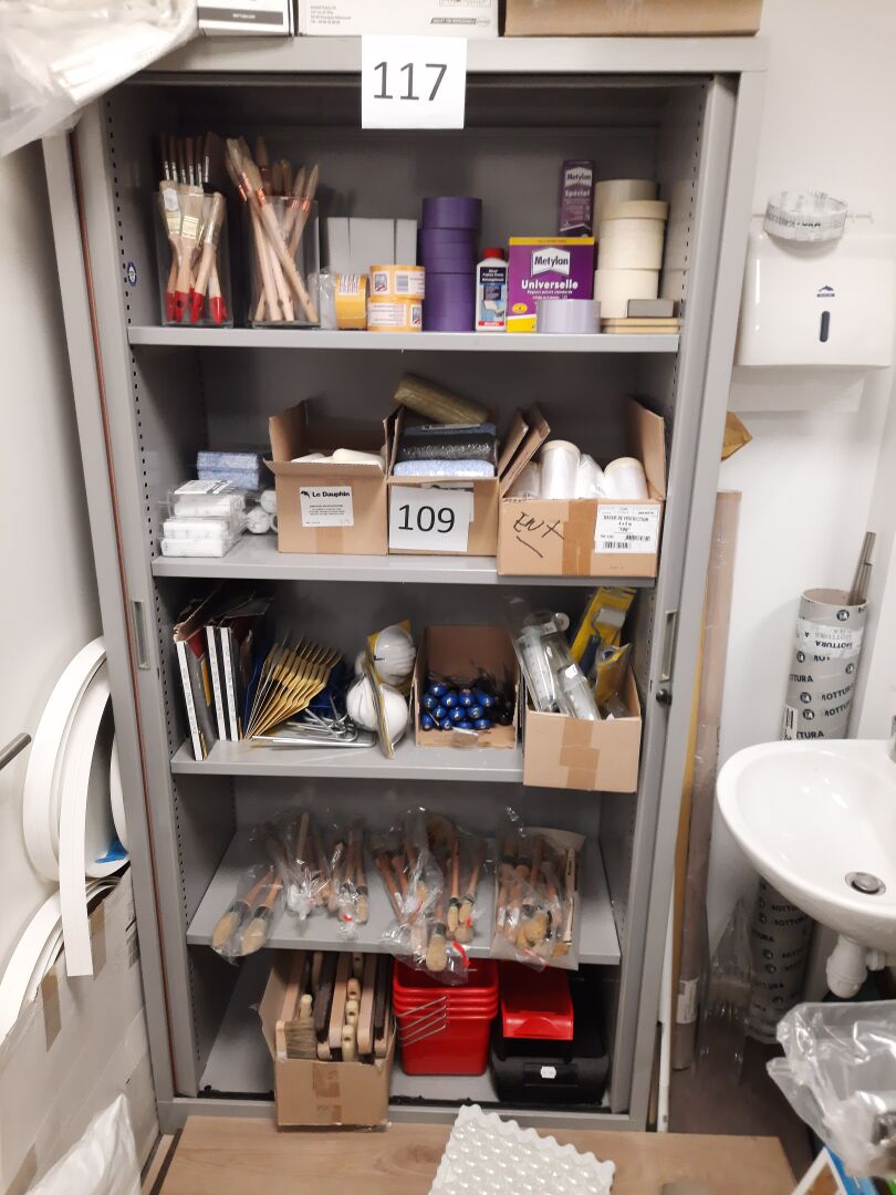 Stock de consommables pour peinture dont adhésif de masquage, films de protection, pinceaux,...