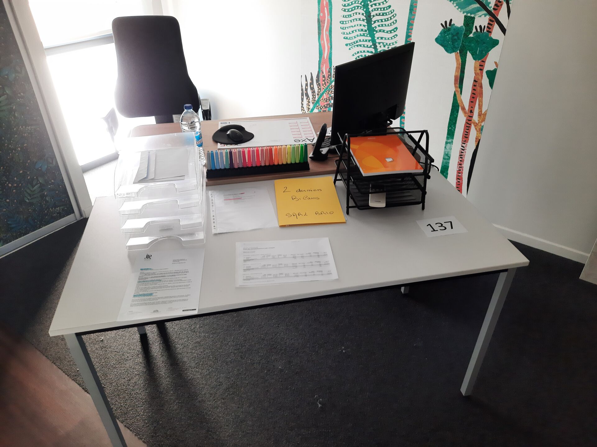 Table de réunion en mélaminé blanc et métal laqué gris composée de 2 tables rectangulaires...