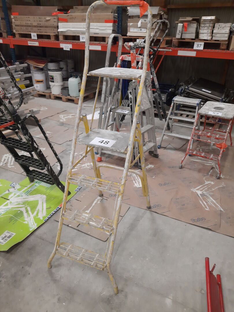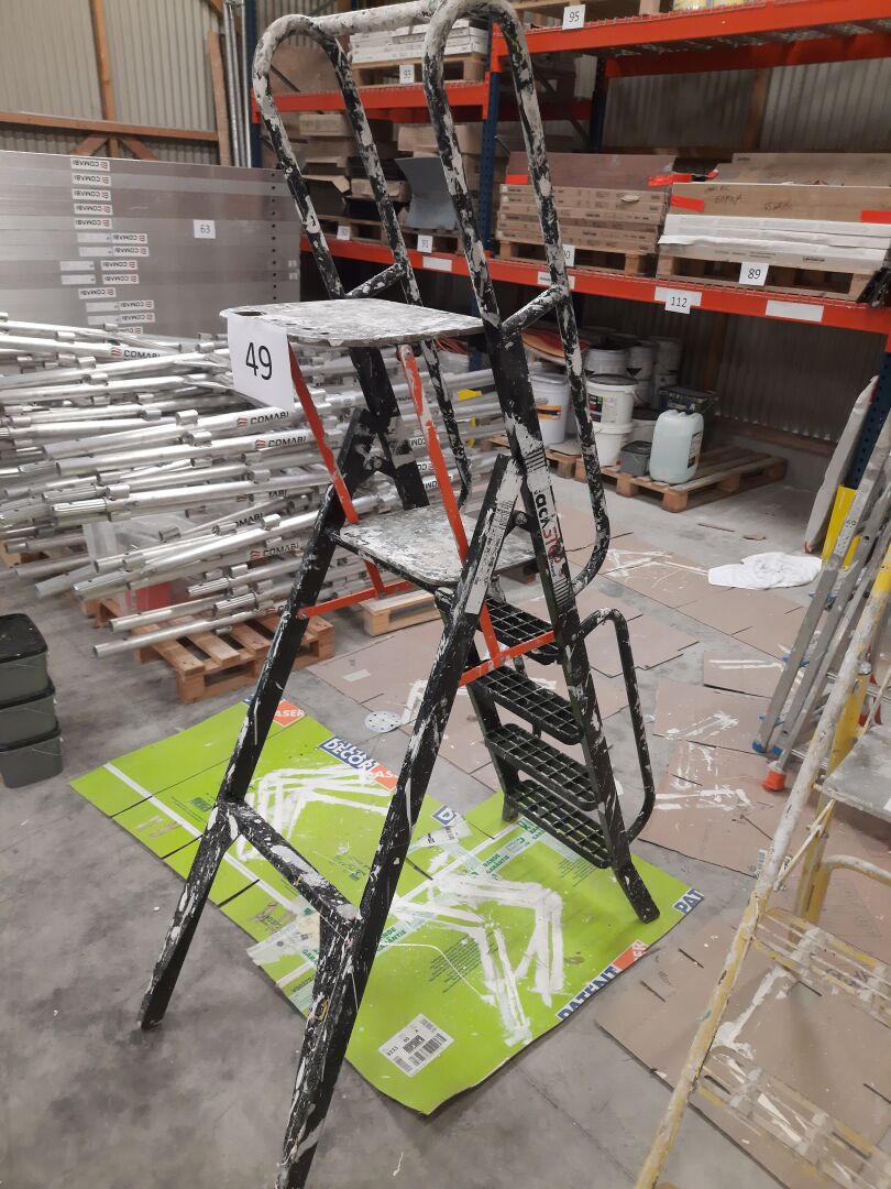 Plateforme en métal laqué noir et contreplaqué antidérapant pour escalier