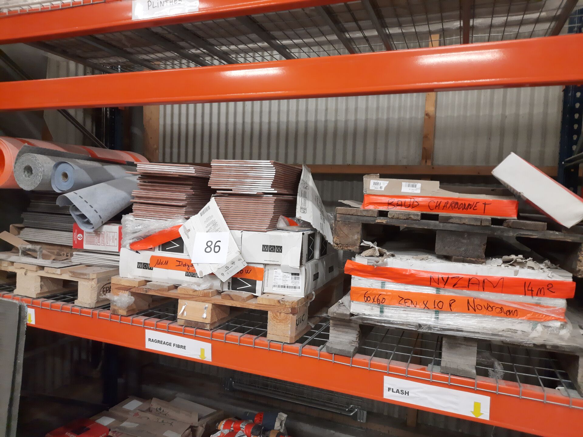Stock de carrelages sections et coloris divers dont 14 m² de 60×60 cm, 29 paquets de...