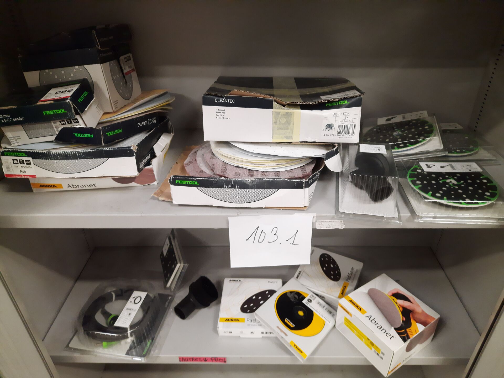 Ensemble d’accessoires et consommables FESTOOL et MIRKA dont abrasifs, plateau de ponçage,...