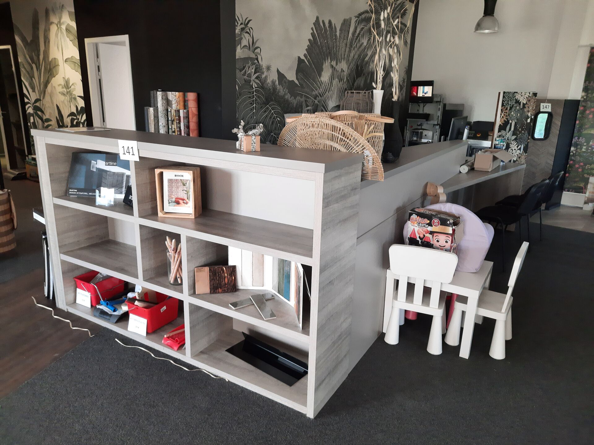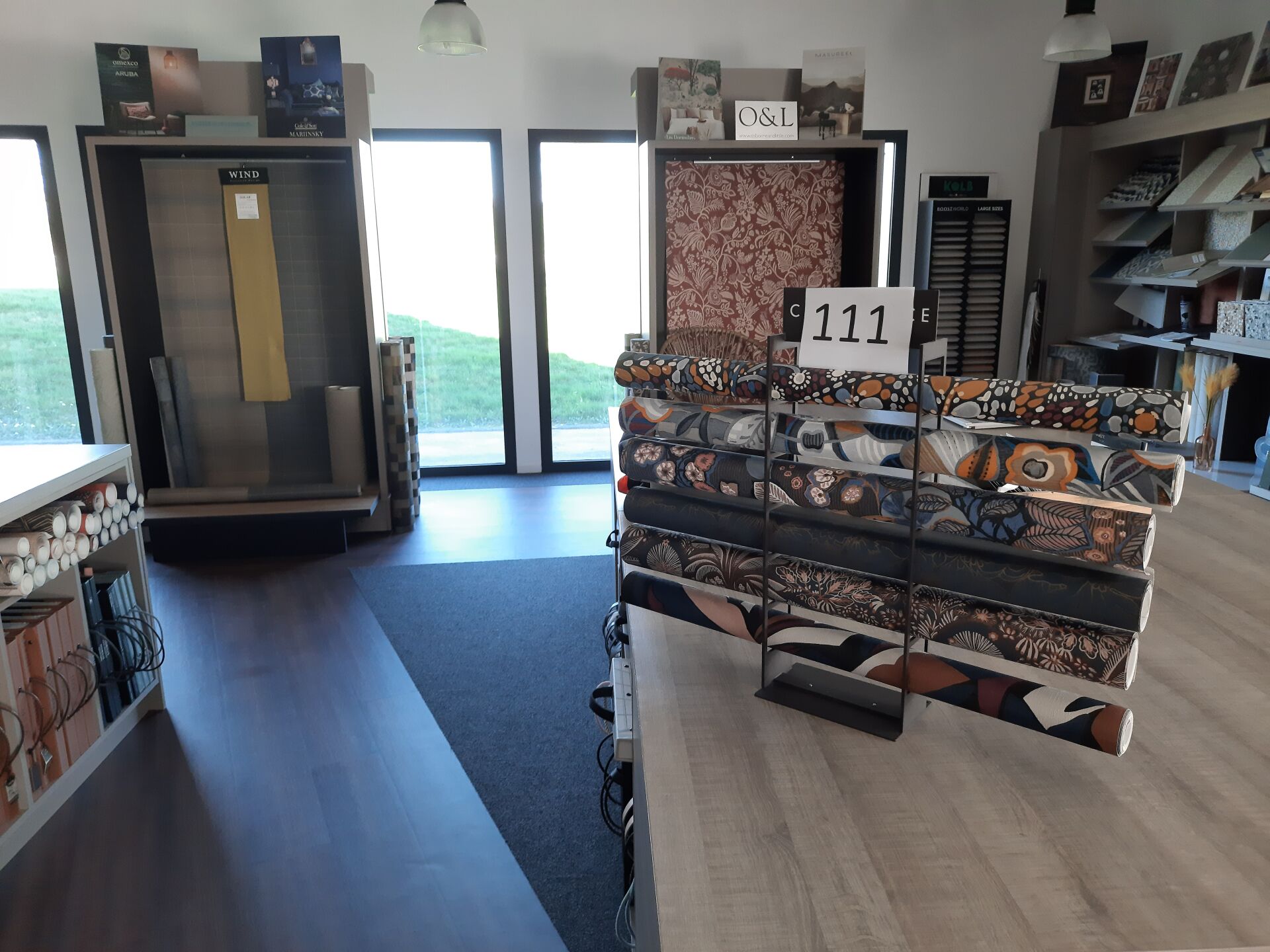 Ensemble d’échantillons et catalogues présents dans le showroom dont papier peint,...