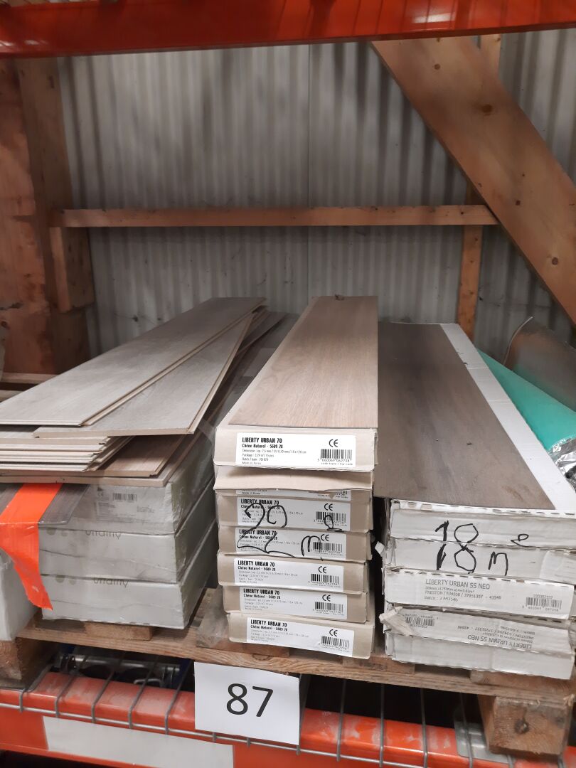 Stock de 3 revêtements de sol dont 18 m² lame PVC effet bois, 22 m² lame PVC effet bois, 8 m²...