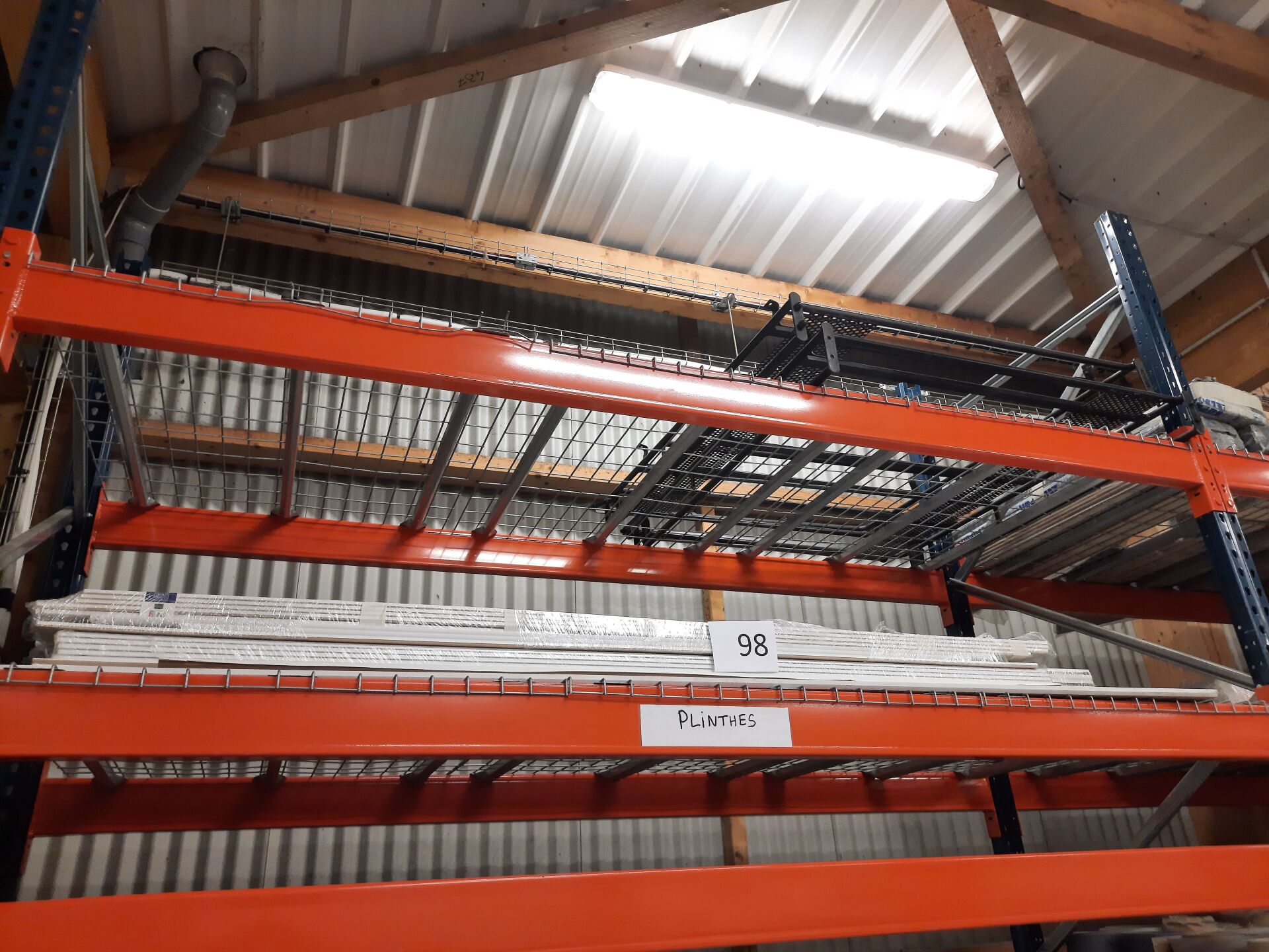 2 racks à baguettes en métal laqué gris, 4.8 m linéaires l’ensemble