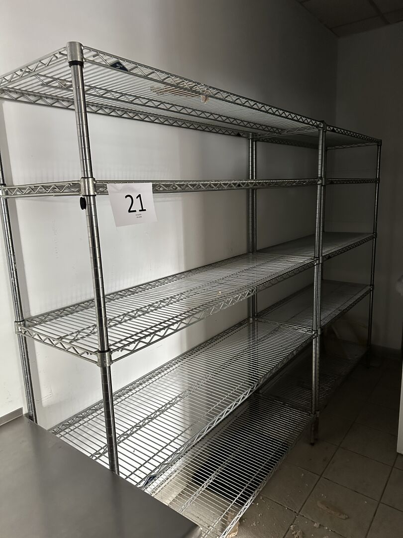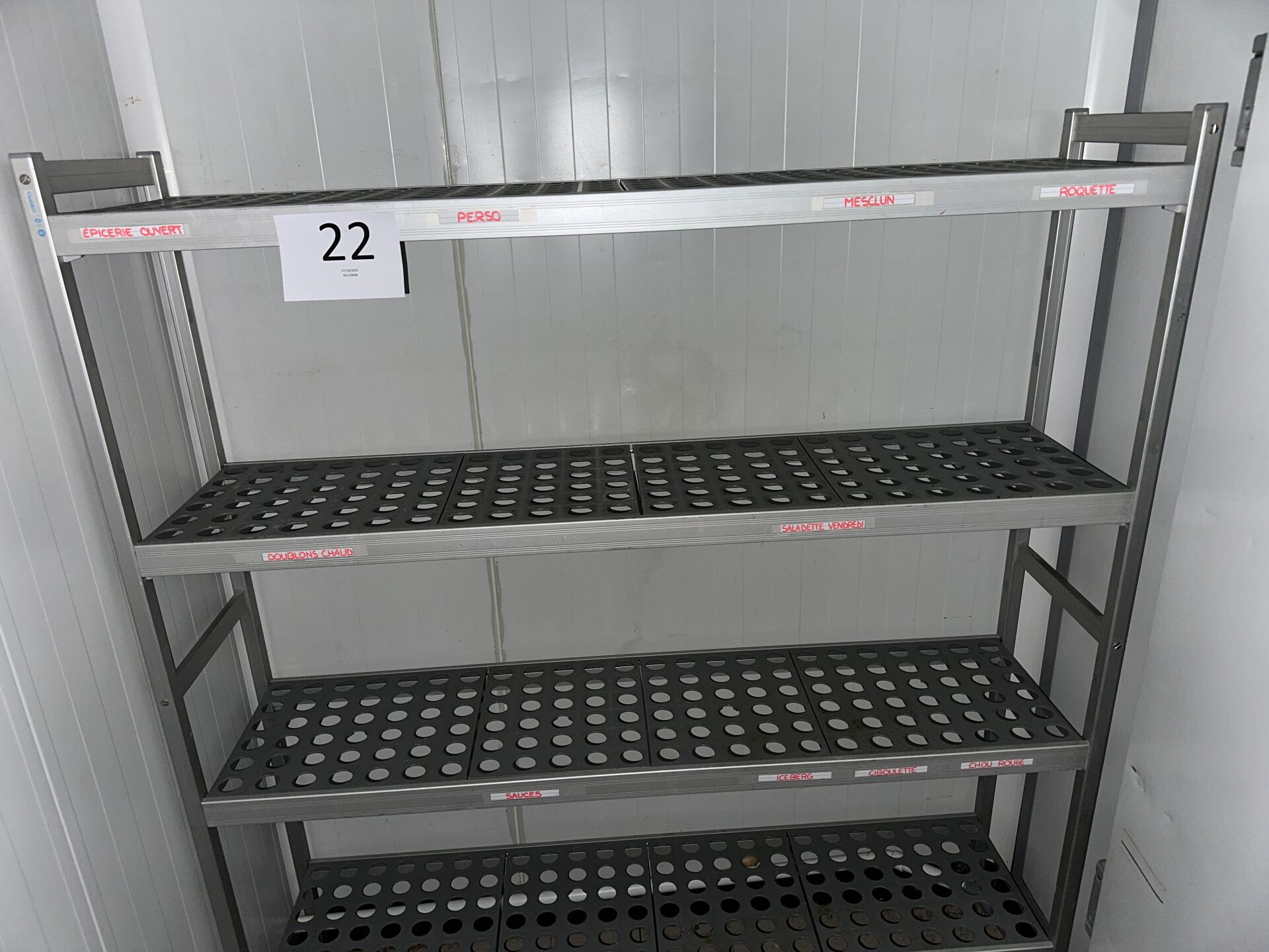 5 étagères : 2 en 150, 1 en U 226 x 145 cm, aluminium avec plateaux polyéthylène FERMOD P 35...
