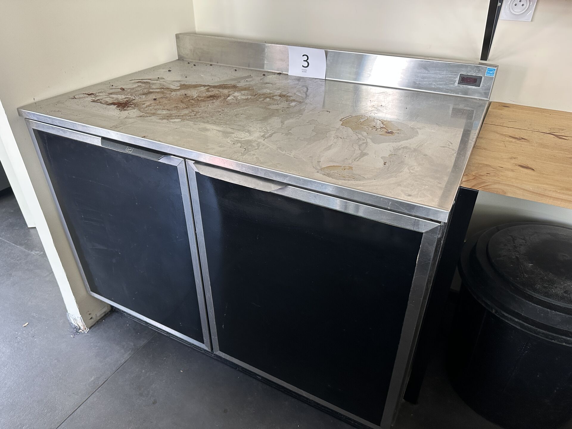 1 saladette DUKE plaque inaccessible (150 x 86 cm) porte vitrée sur le dessous, plaques téflon...