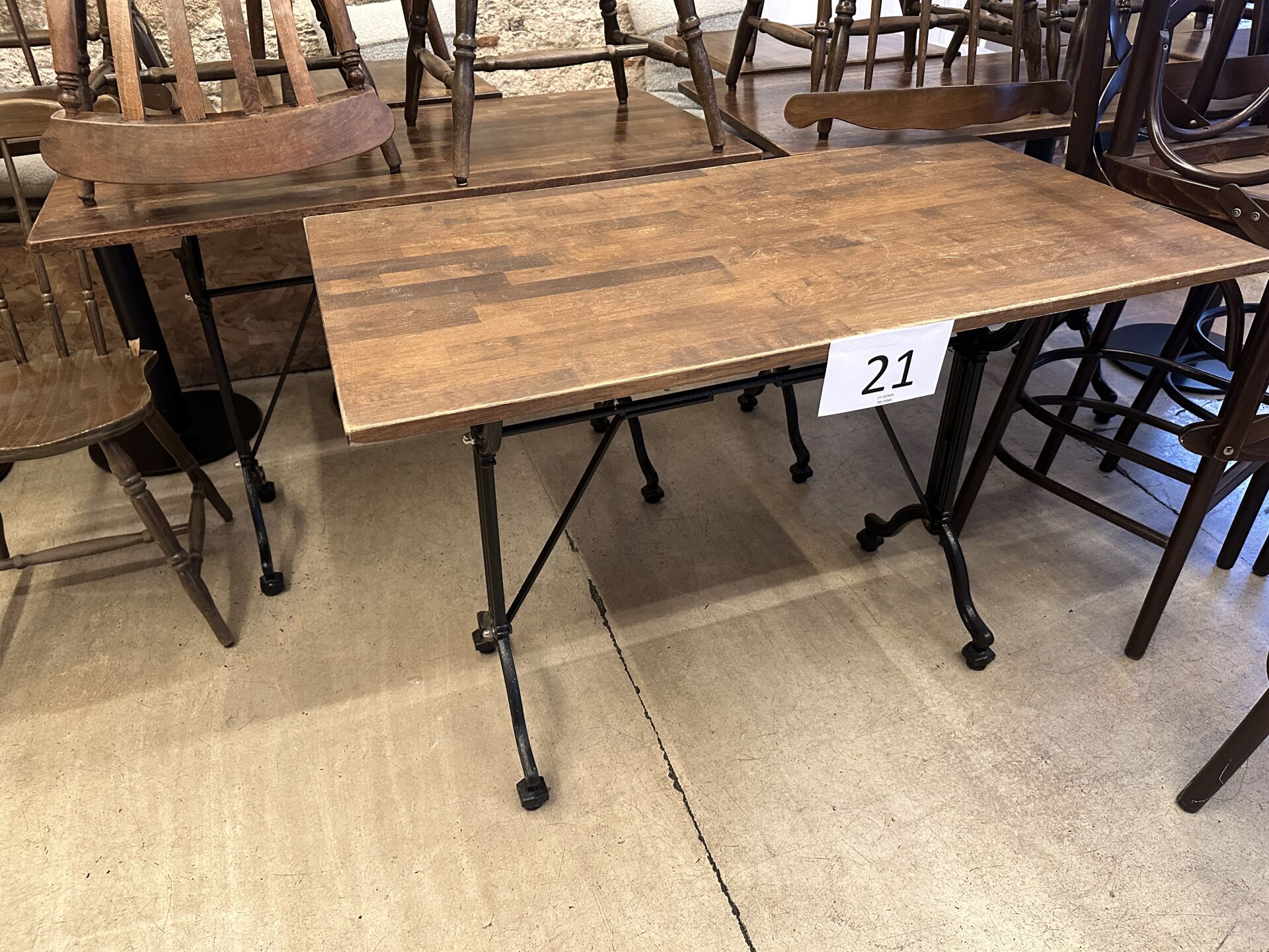 6 tables, 2 couverts, plateau en bois naturel, piètement central en métal noir 55 X 55 cm