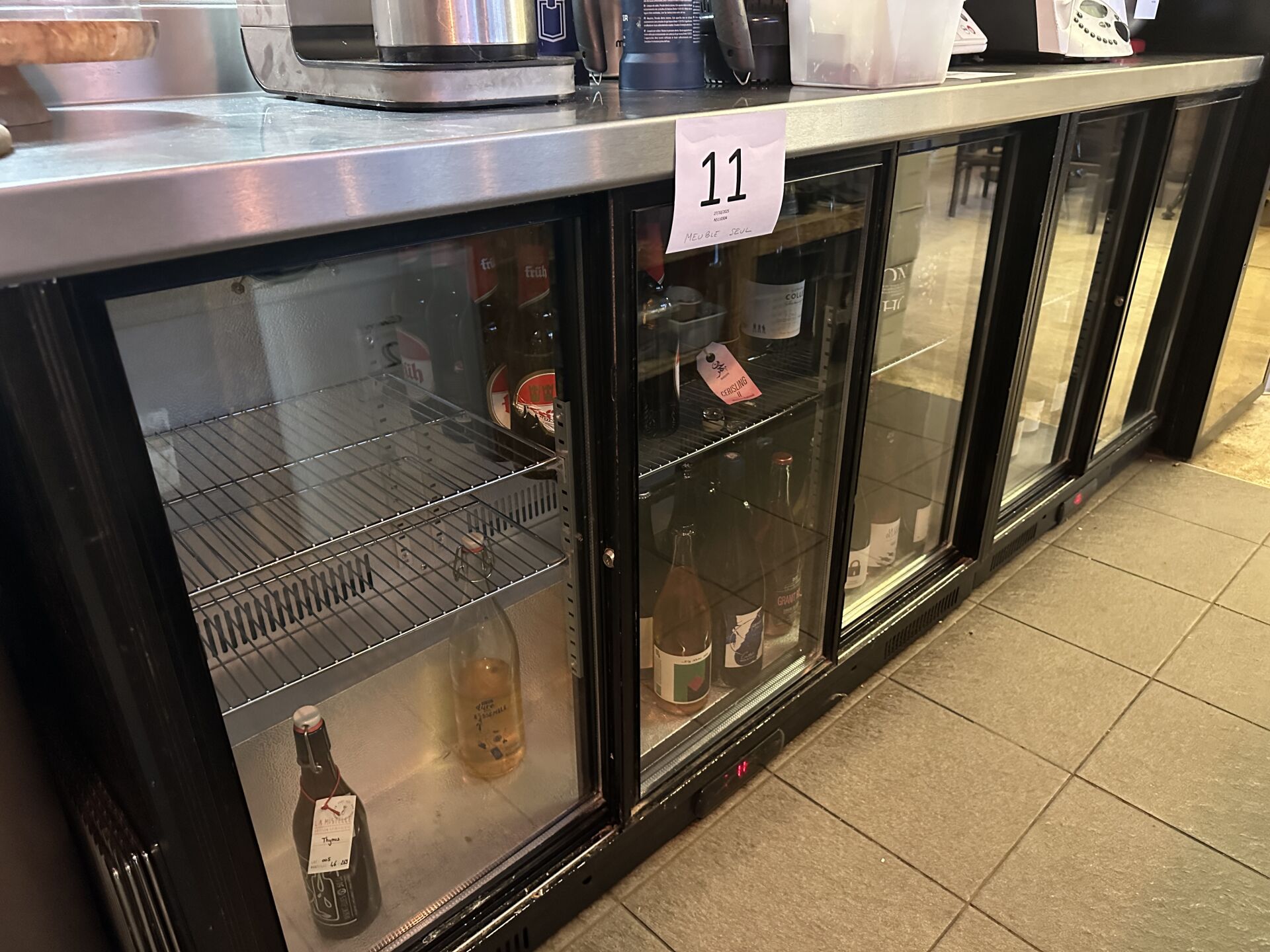 1 arrière bar, avec meubles réfrigérés ouvrant à 2 et 3 portes, dessus plateau en inox à...