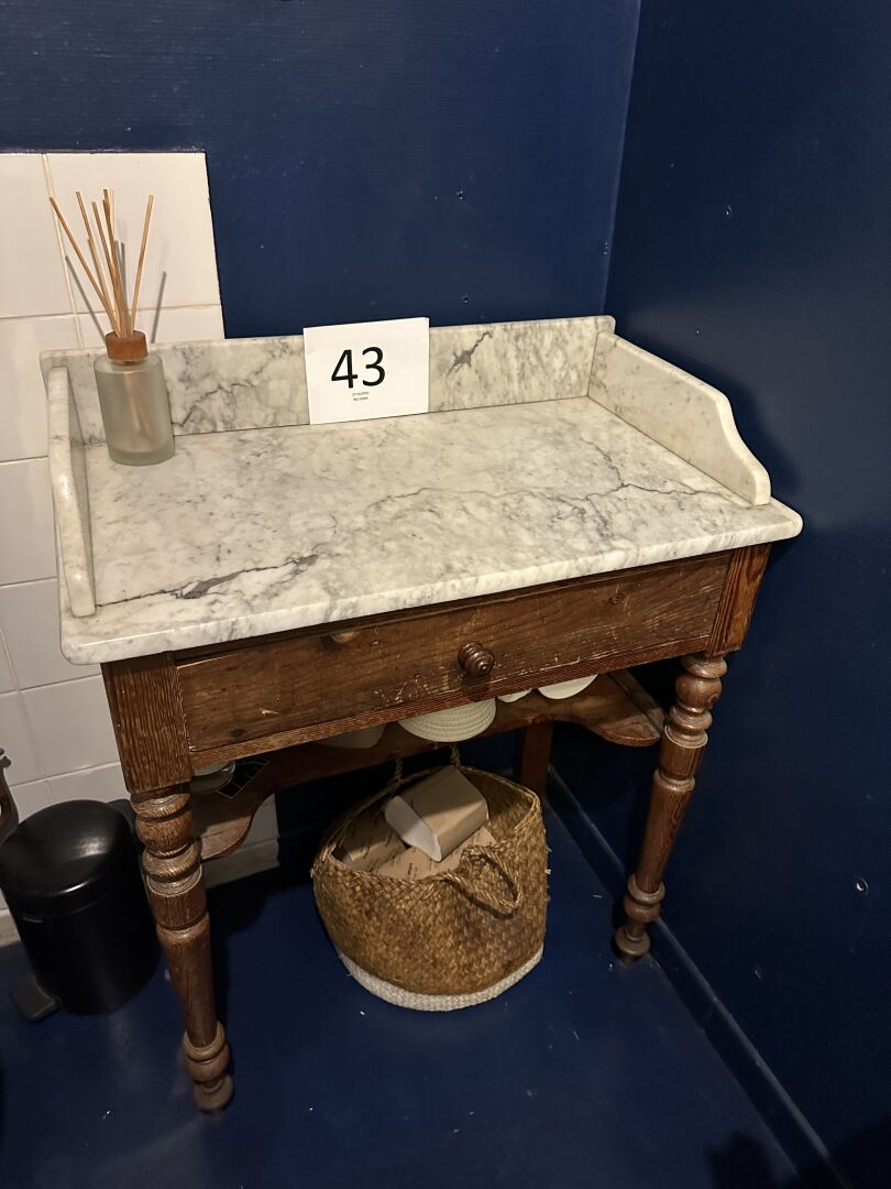 2 tables type guéridon, plateau en marbre (dont l’une plateau accidenté), piètement...