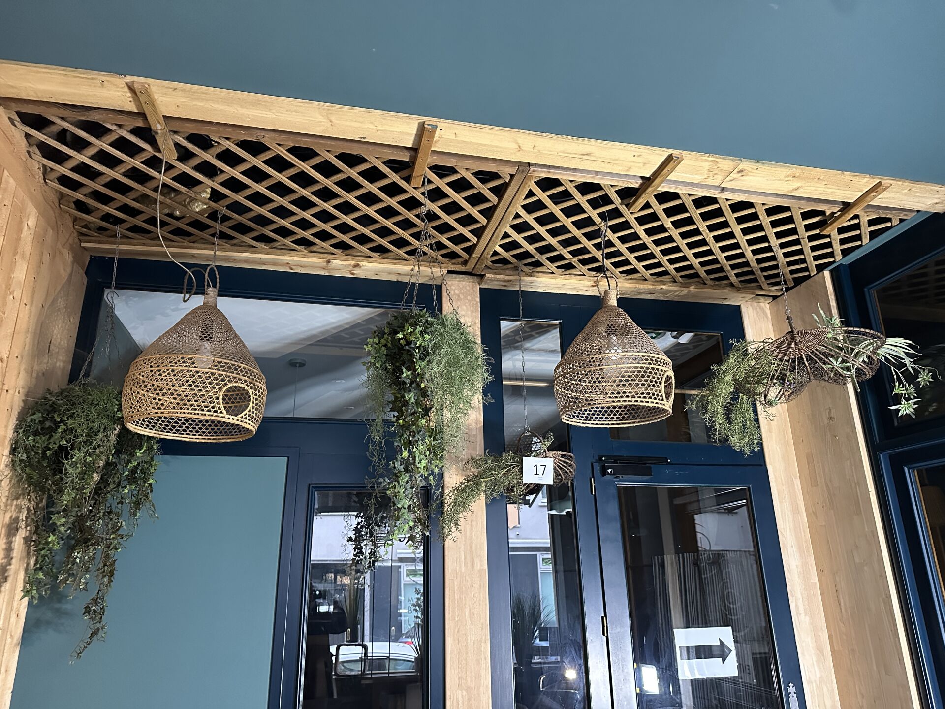 Dans l’entrée : 1 ensemble de décoration dont plantes artificielles, paniers osier...