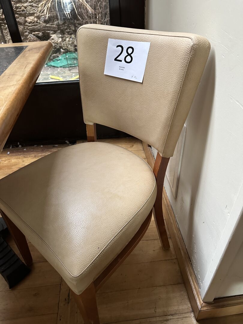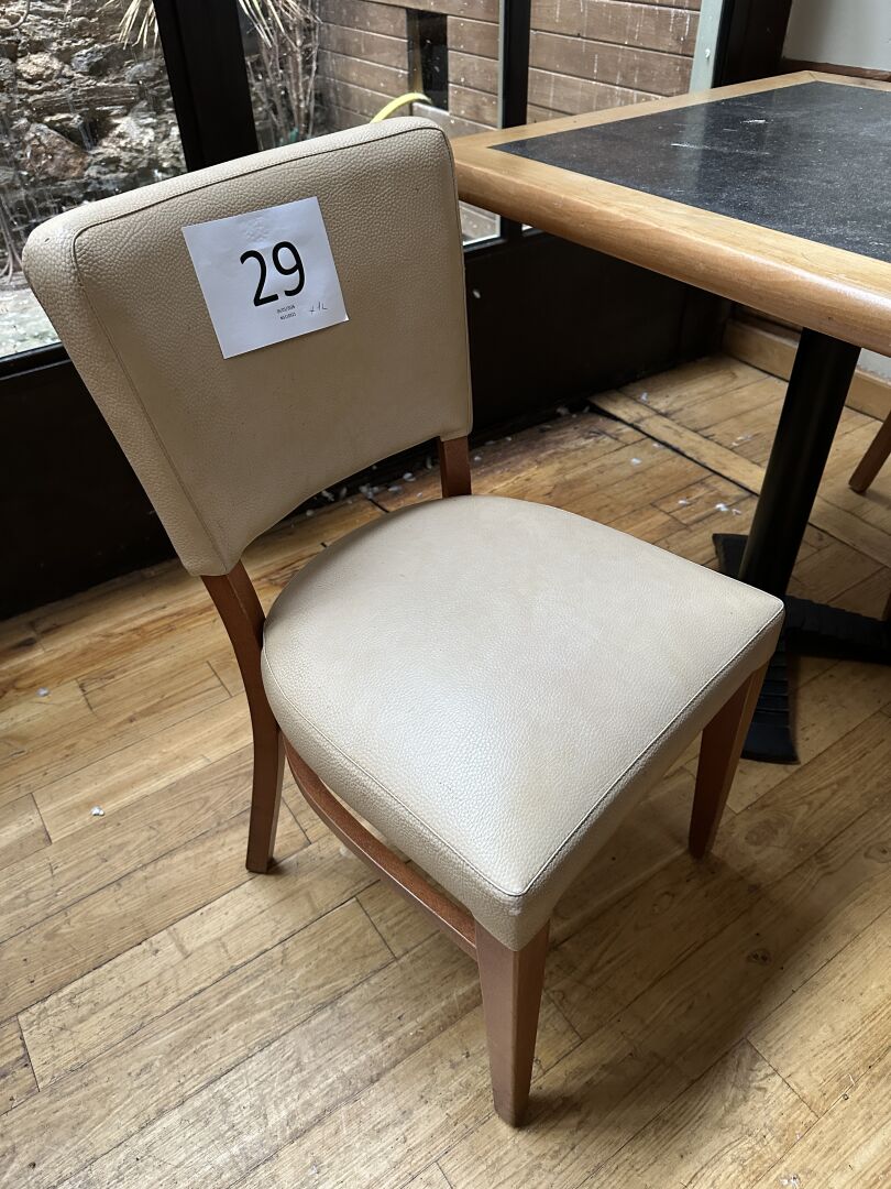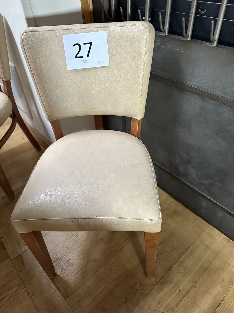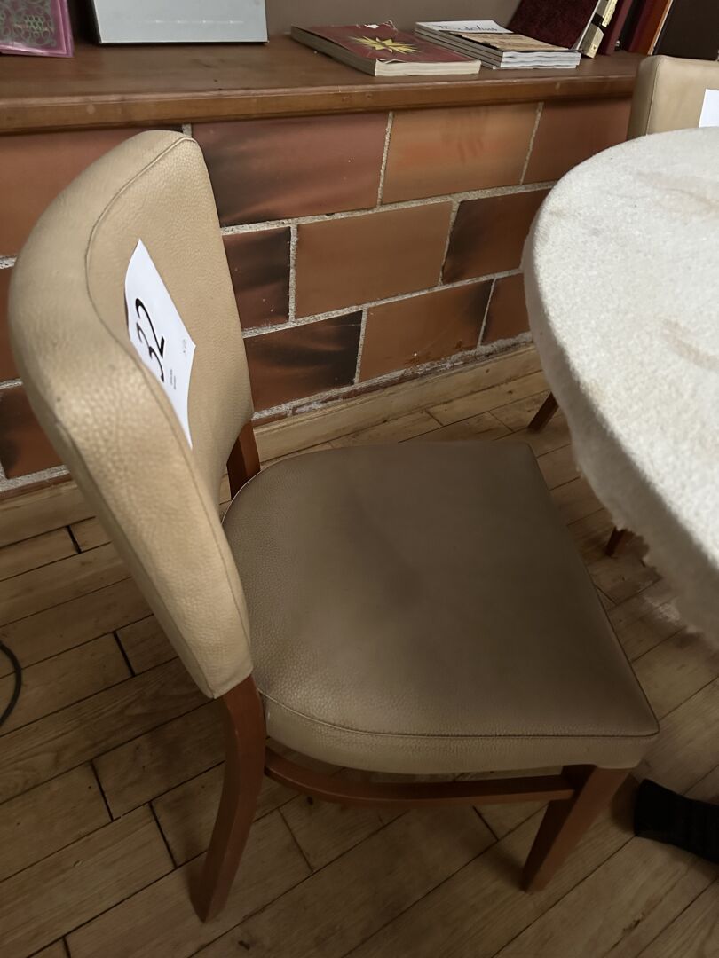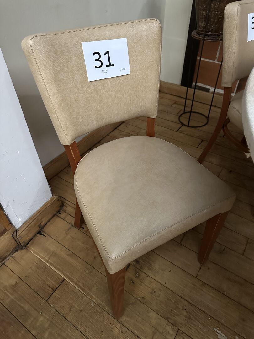 12 chaises simili cuir beige piètement bois