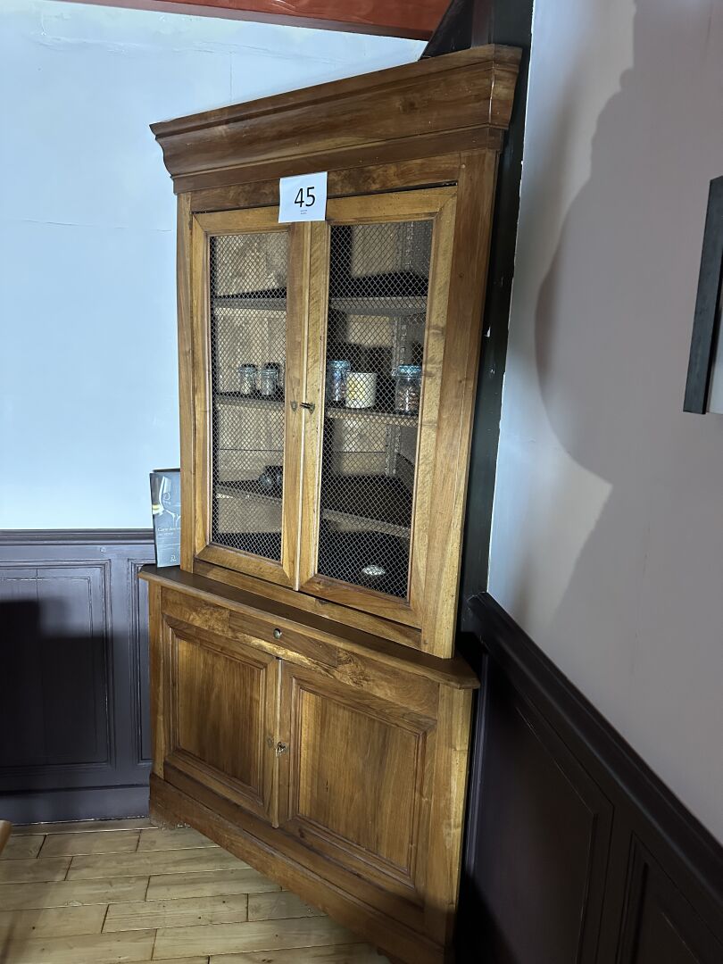 1 meuble d’angle bois 4 portes dont 2 grillagées 120 x 50 x 220 cm