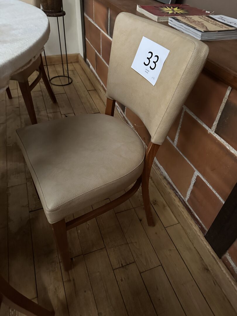10 chaises simili cuir beige piètement bois