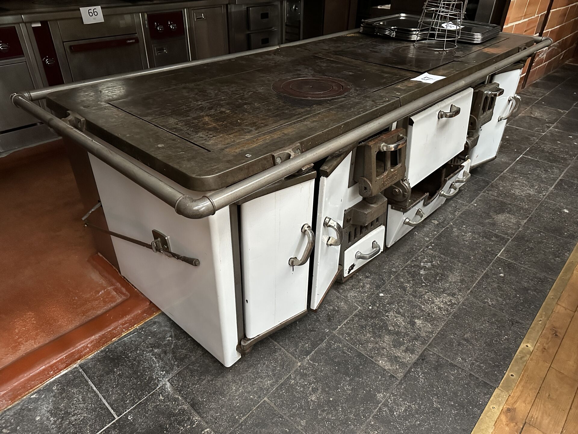 1 ancienne cuisinière fonte bois/charbon AEROFLAM MARECHAL émaillée blanche , 298 x 120 x 85...