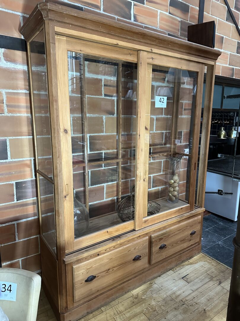 1 grande vitrine bois 2 portes coulissantes et 2 tiroirs en partie basse 120 x 60 x 246 cm (sans...
