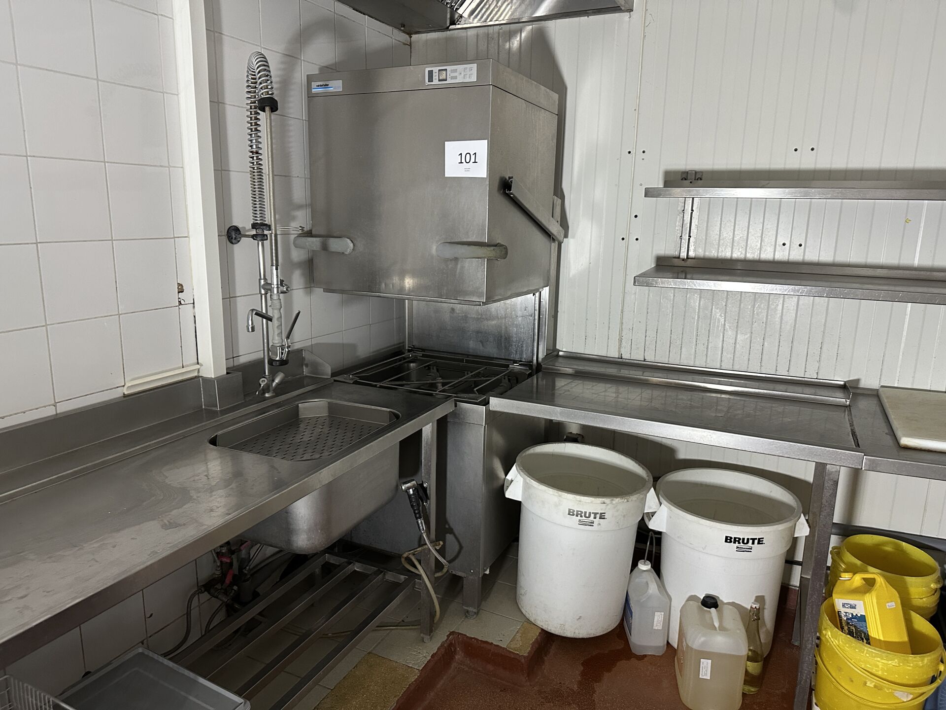 1 lave vaisselle à capot inox WINTERHALTER sans plaque apparente 70 x 75 x 155 cm , avec 2 plans...
