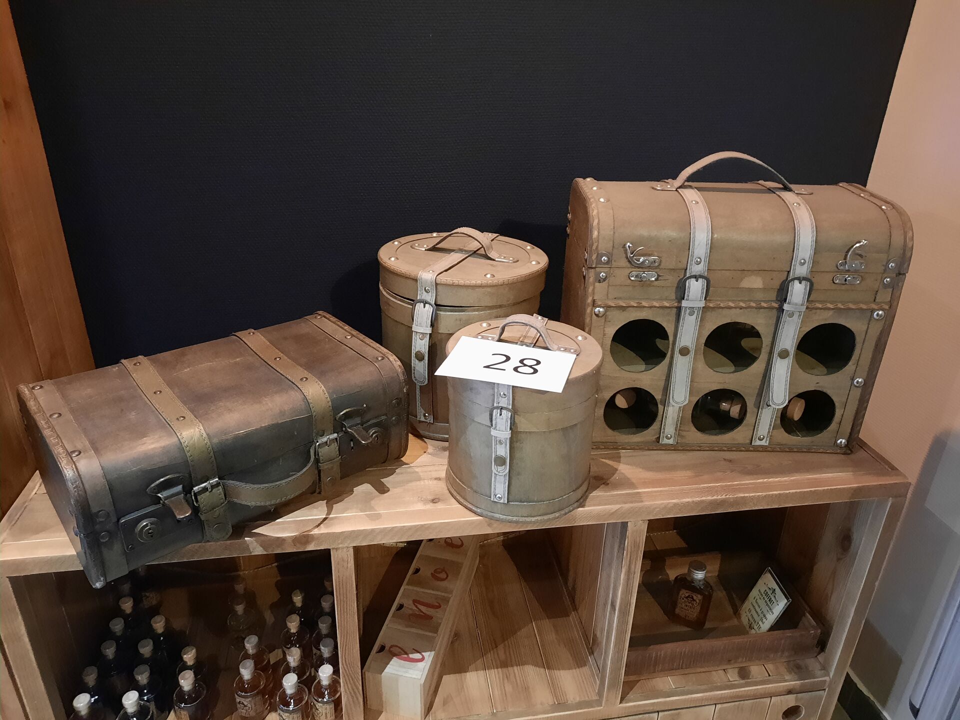 4 objets de décoration/rangement en bois dont 2 malettes et 2 boites à chapeau