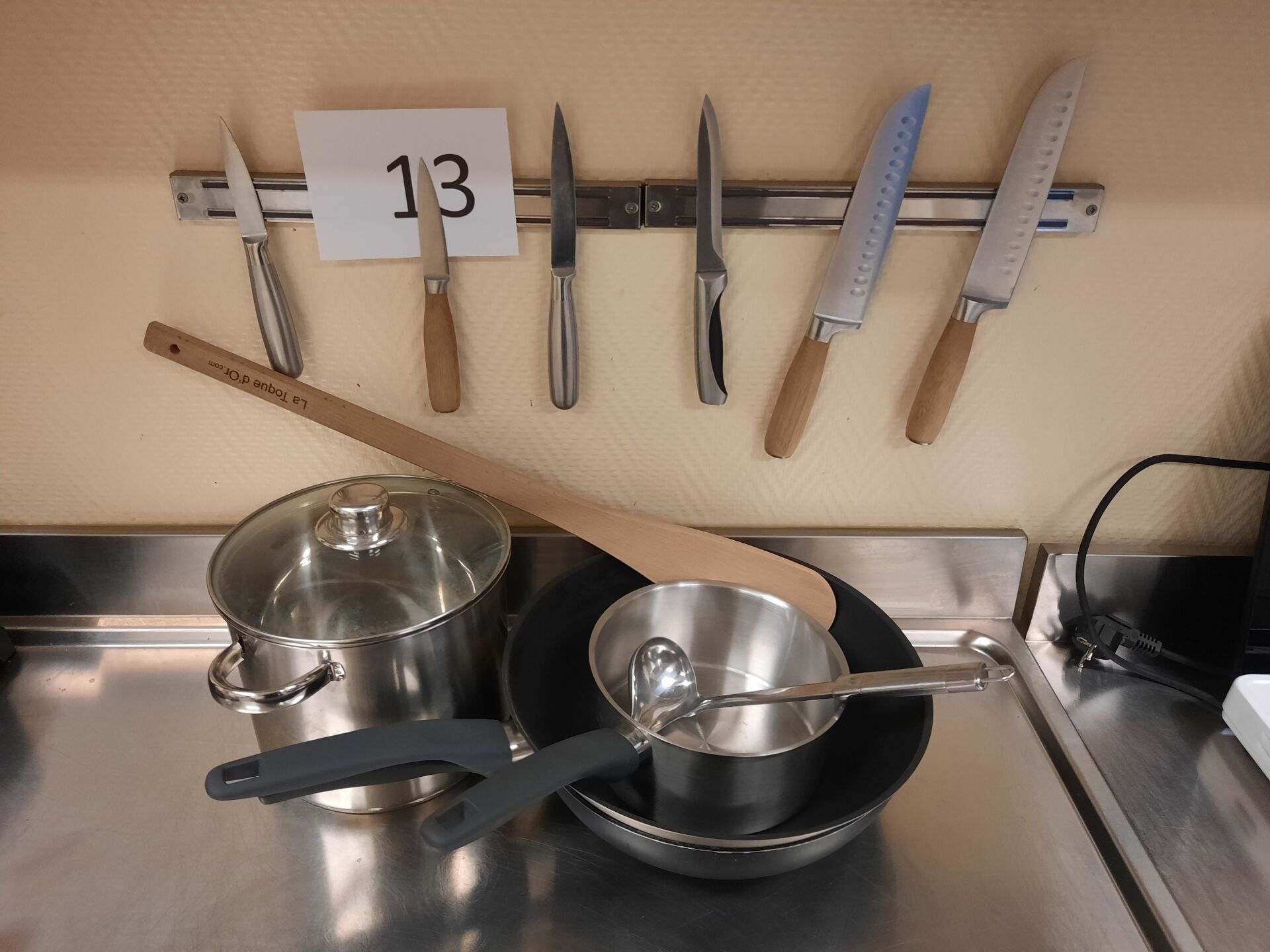 Gamellerie comprenant casseroles, wok, couteaux, faitouts, 2 barres aimantées A DEMONTER...