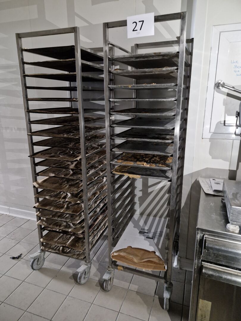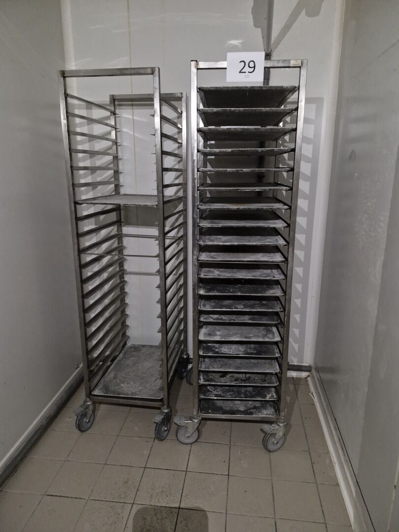 2 échelles inox mobiles 20 niveaux 46 x 60 x 182 cm avec 3 plaques, 1 carton de papier...