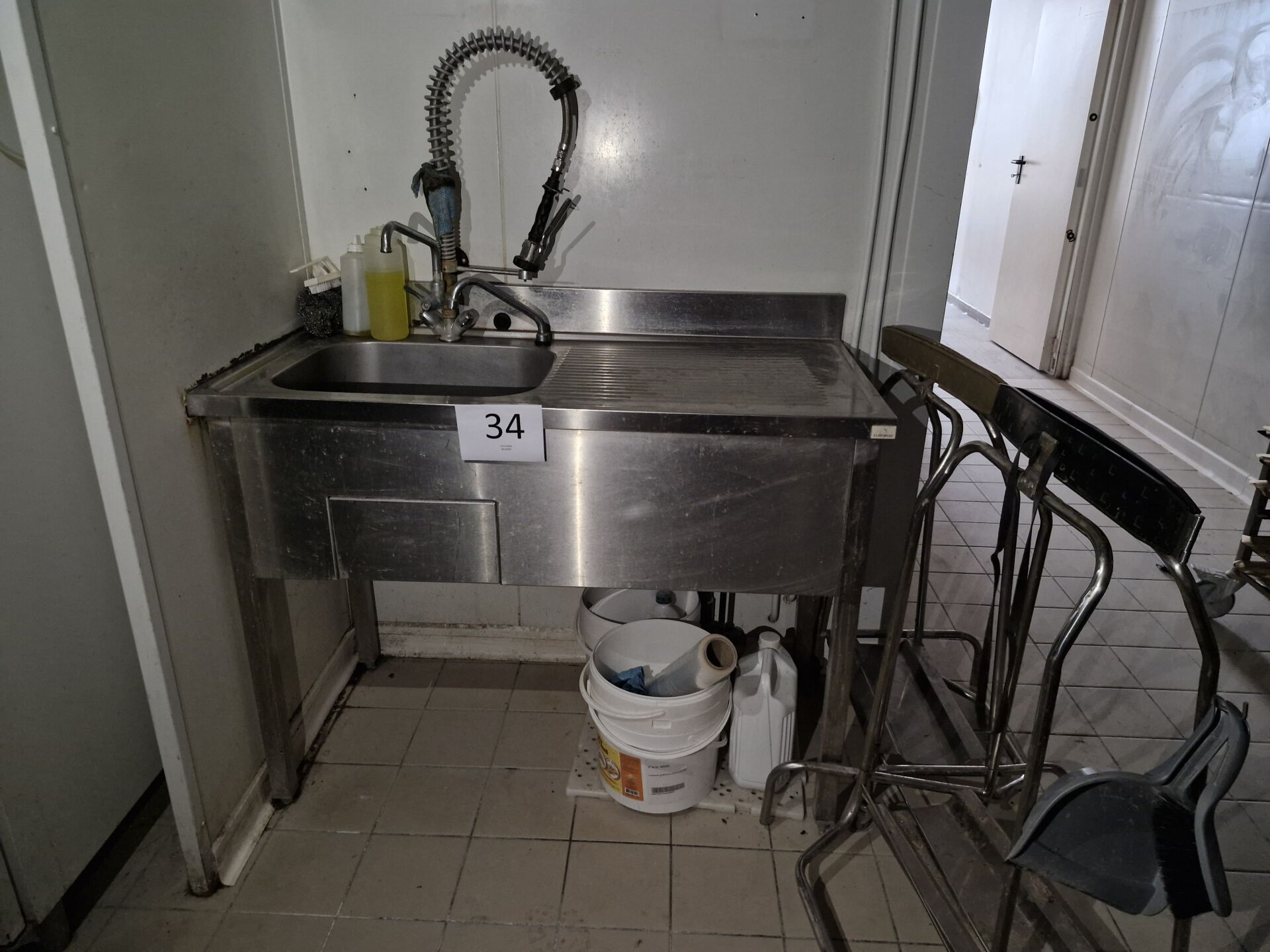 1 plonge inox 1 bac avec égouttoir et dosseret, commande genou, avec douchette 120 x 60 cm, 1...
