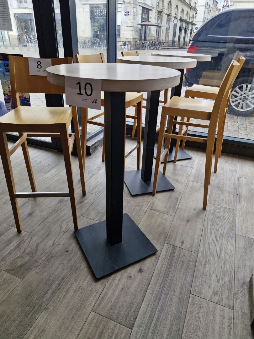 2 échelles inox mobiles 18 et 20 niveaux 46 x 63x 185 cm et 46 x 60 x 173 cm avec 20 plaques