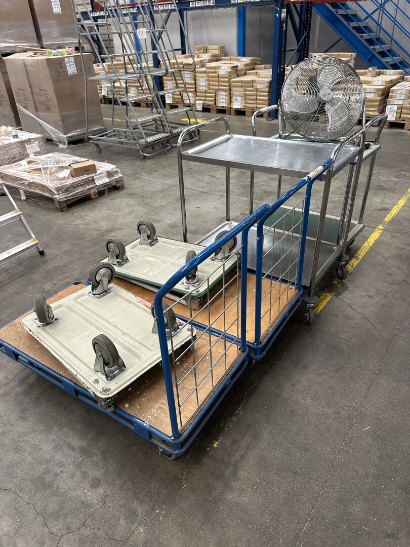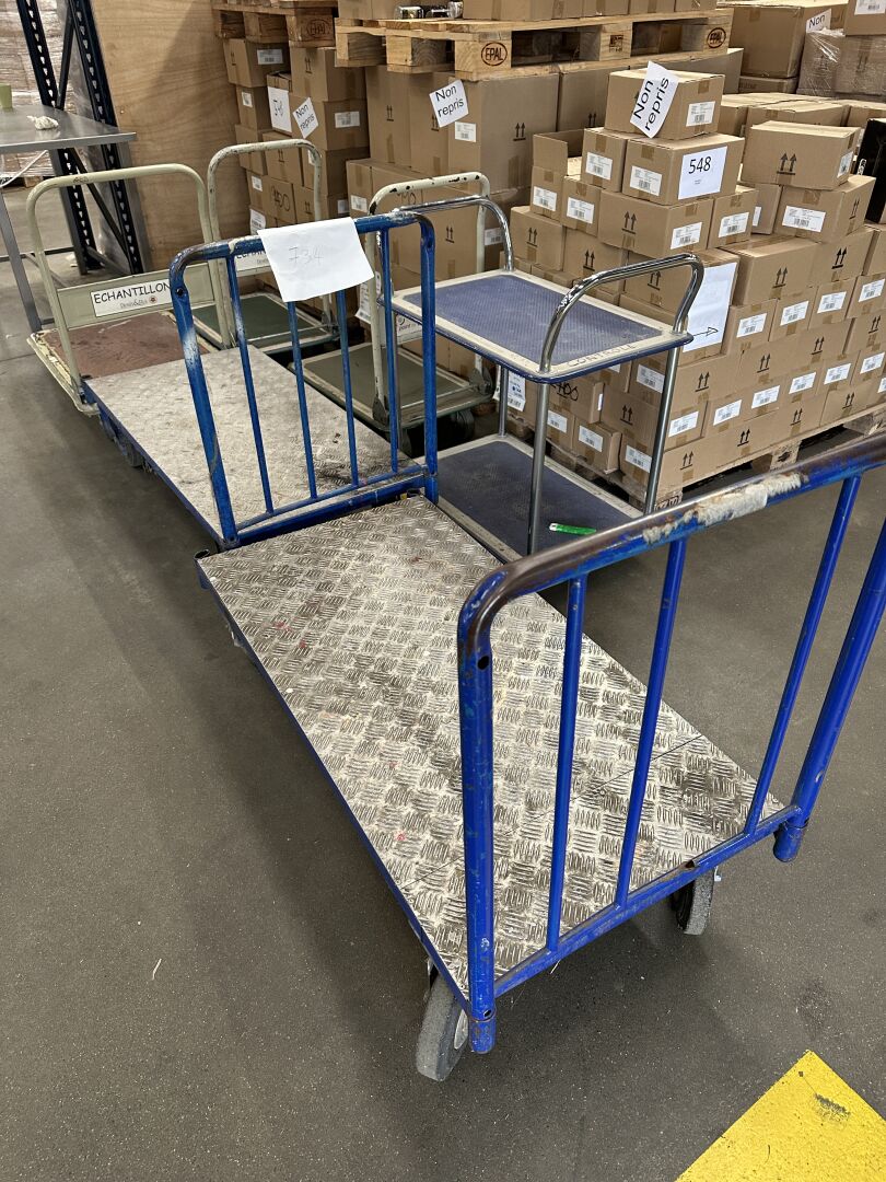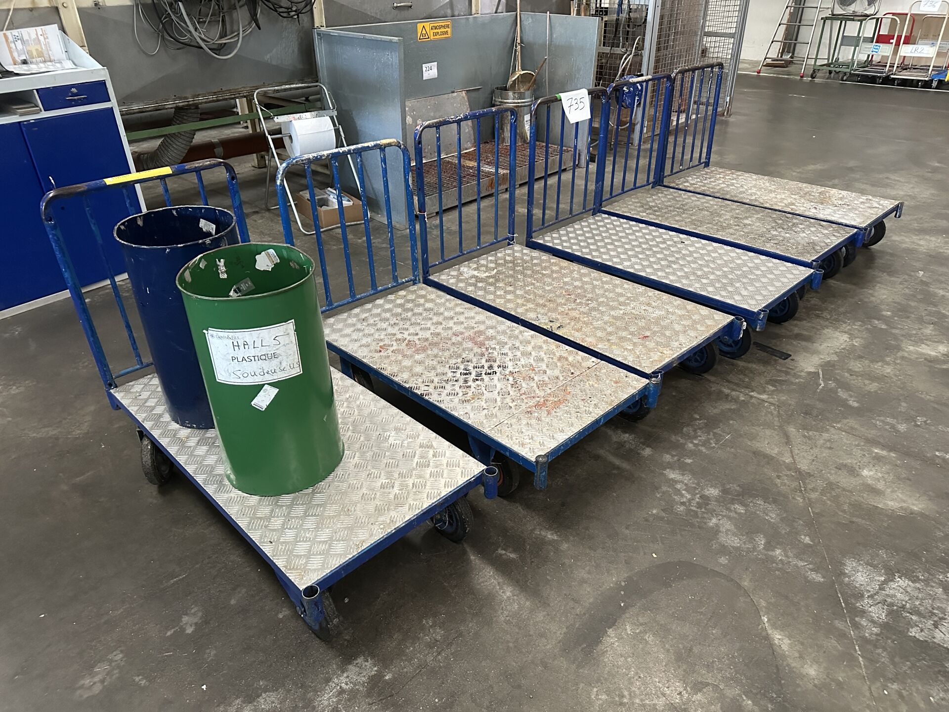 6 chariots type archives , 2 chariots de manutention métal bleu plateau galva 120 x 60 cm (HALL...