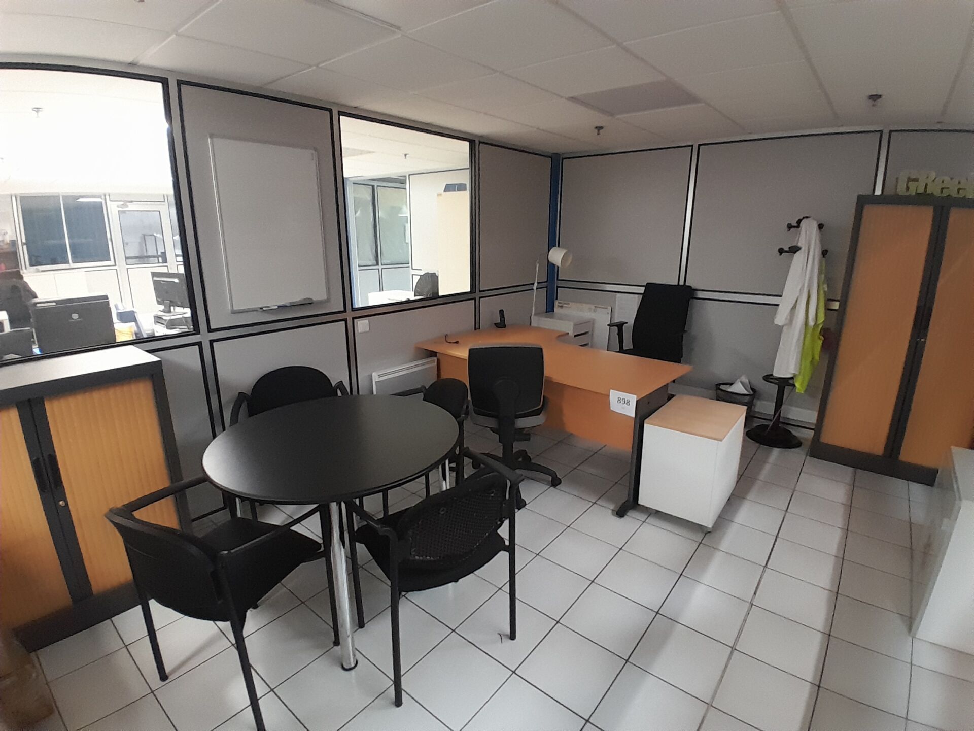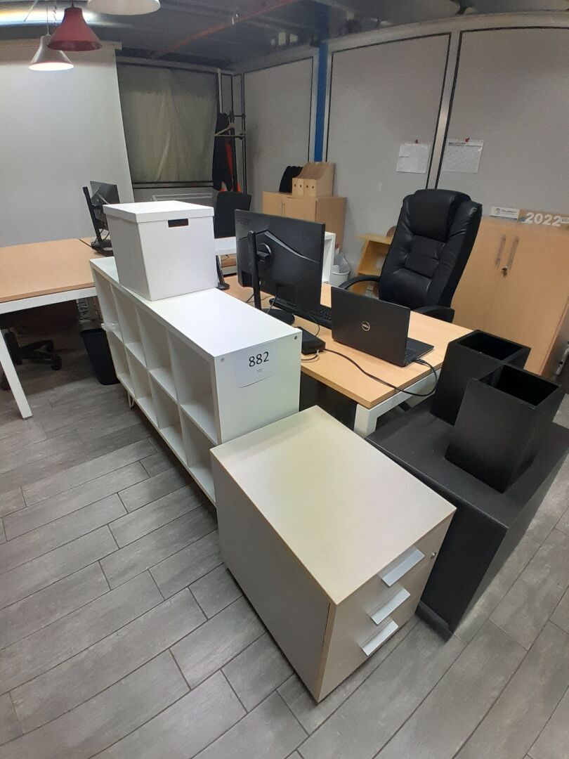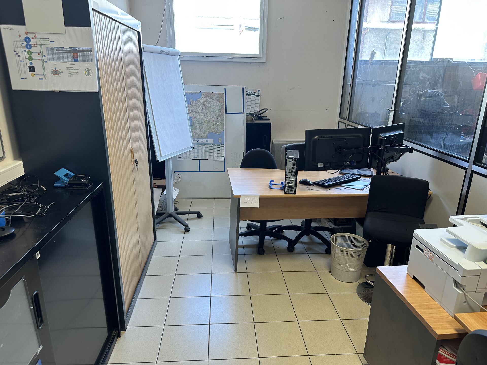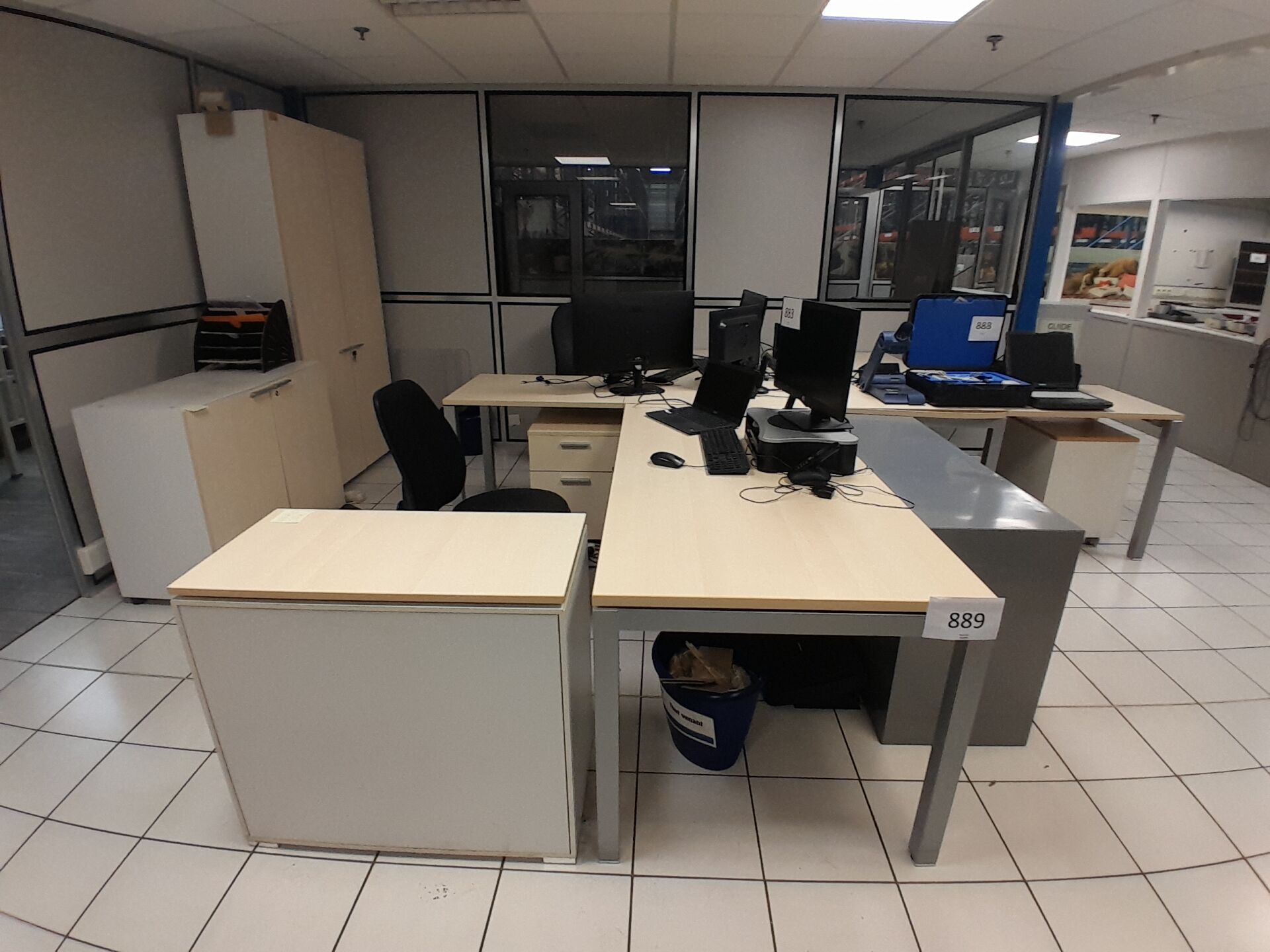 4 bureaux mélaminé blanc 180 x 75 cm avec 2 caissons 3 tiroirs intégrés et 4 meubles muraux...