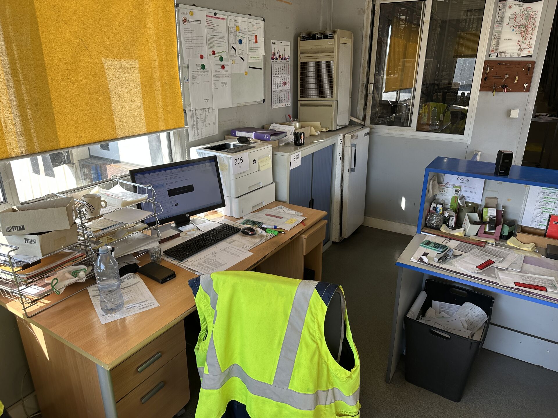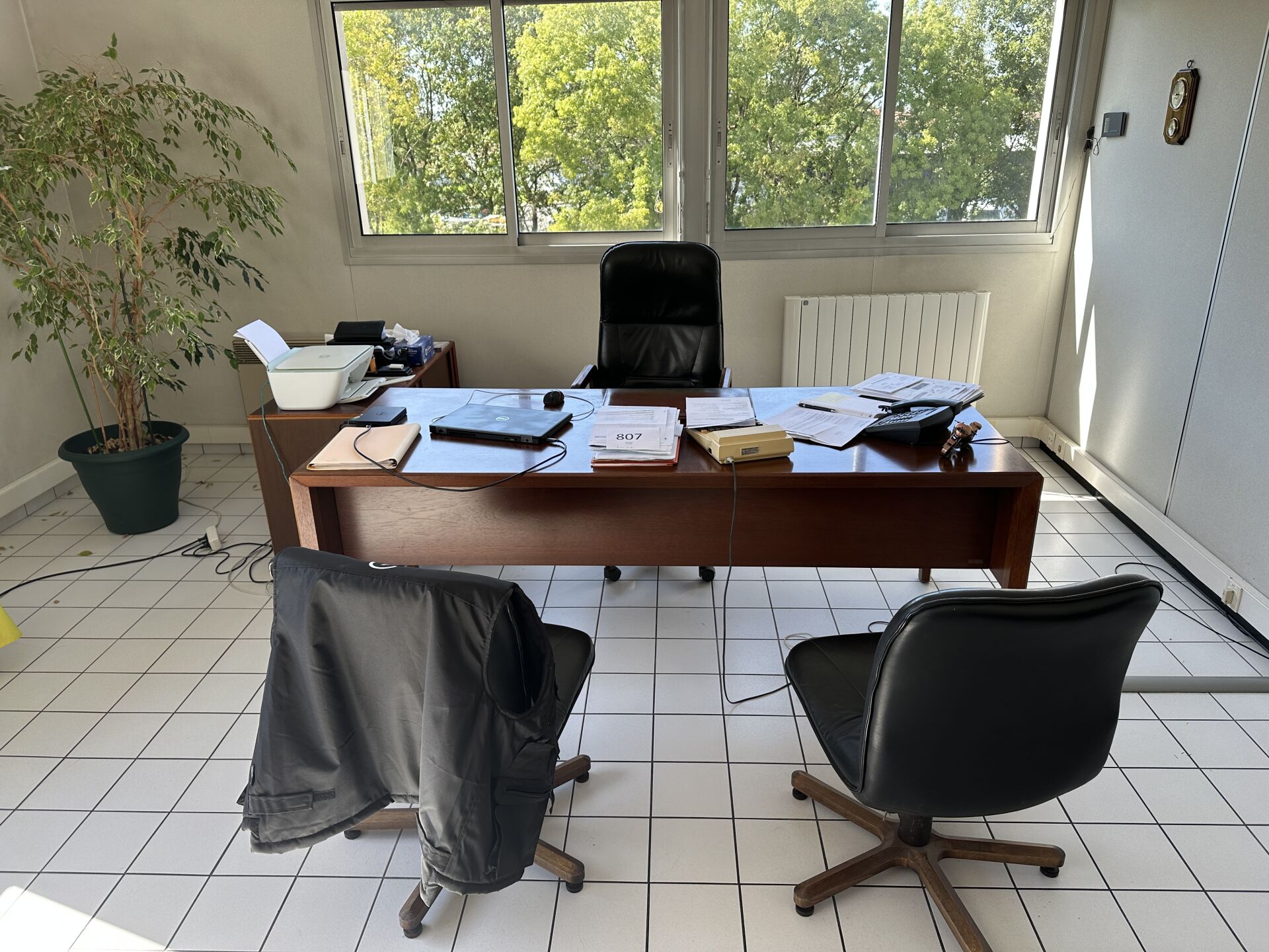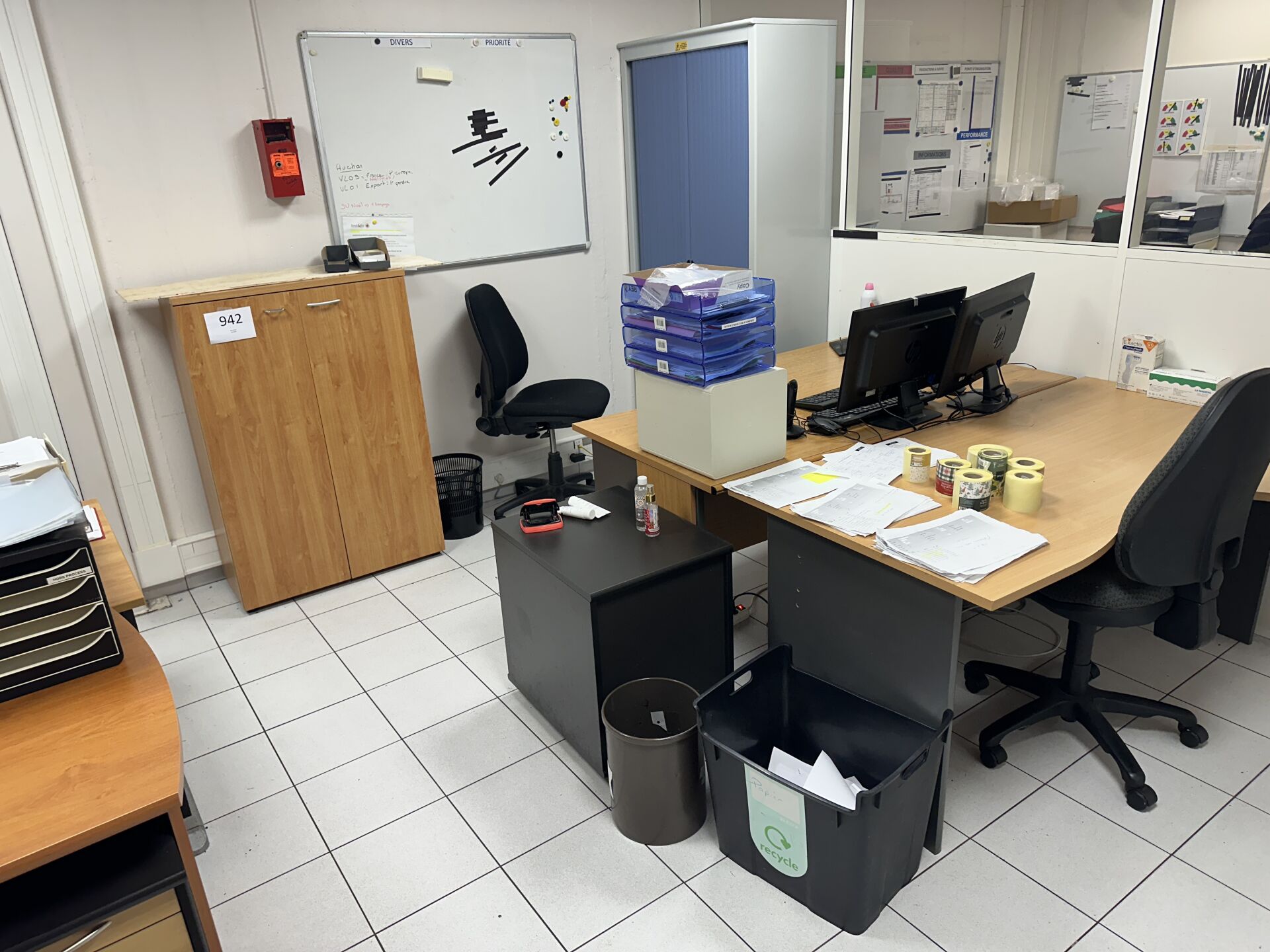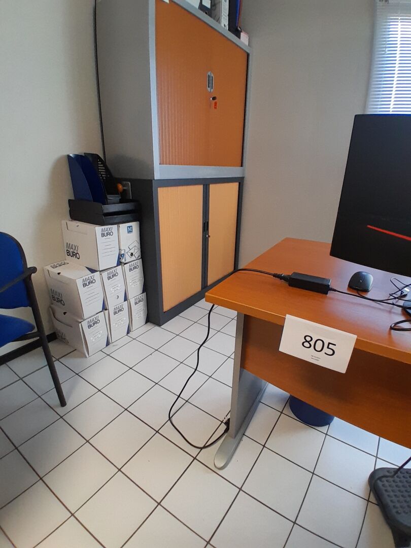 4 bureaux mélaminé blanc 180 x 75 cm avec 2 caissons 3 tiroirs intégrés et 4 meubles muraux...