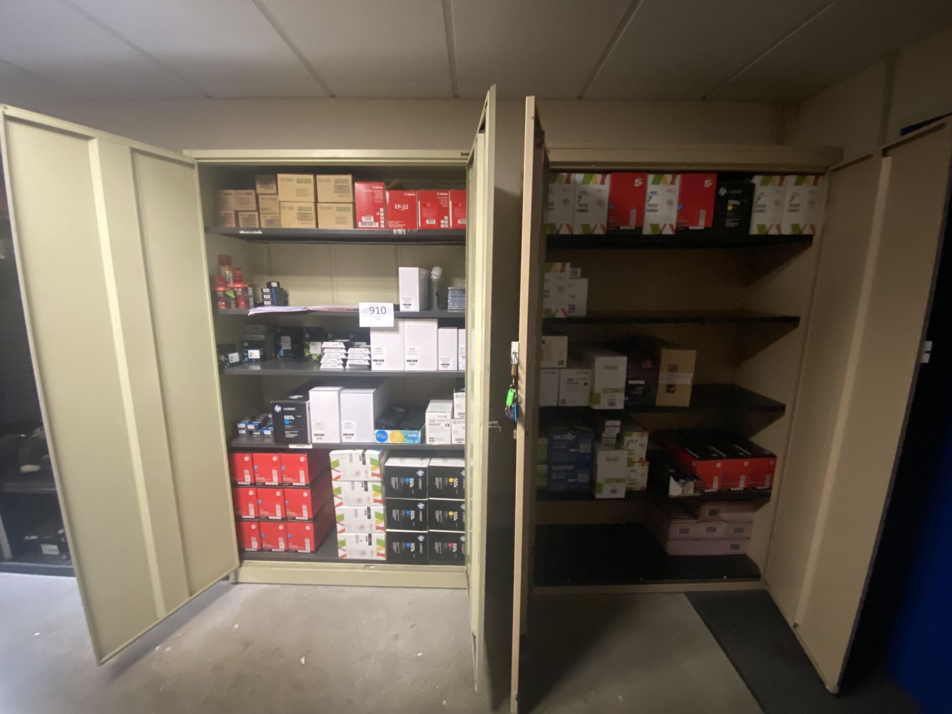 dans 2 armoires : 1 stock de cartouches et toner pour diverses imprimantes, et copieurs (environ...