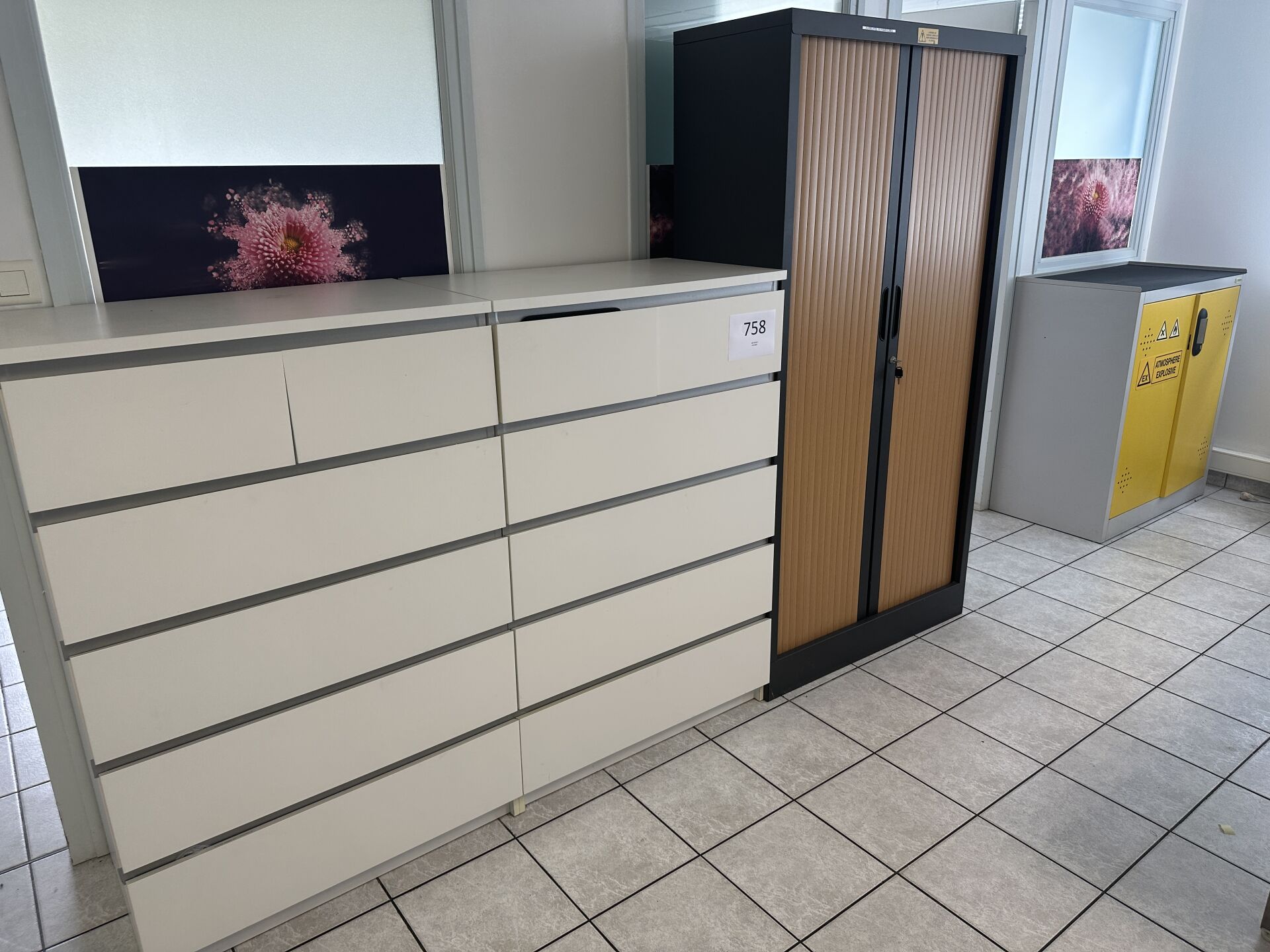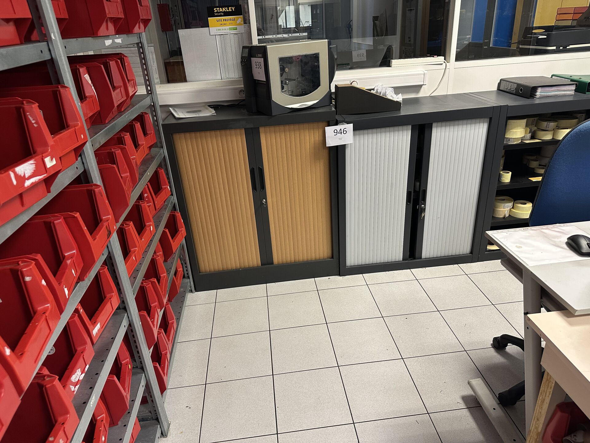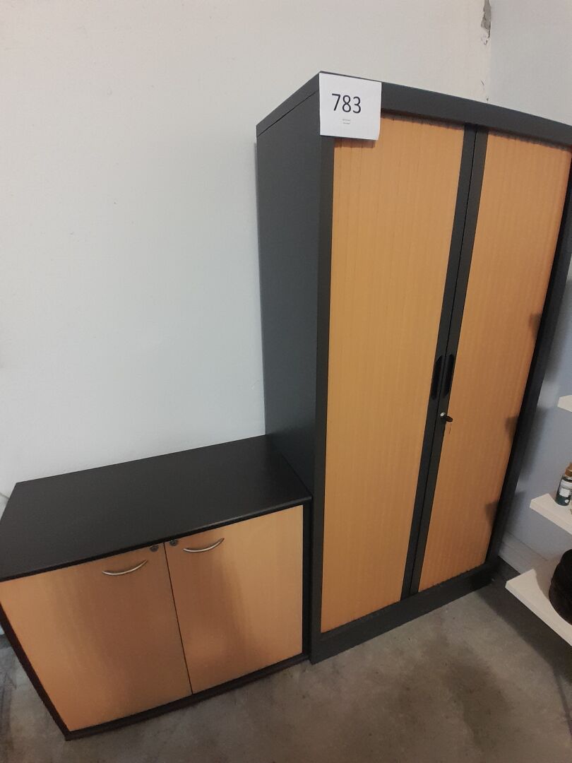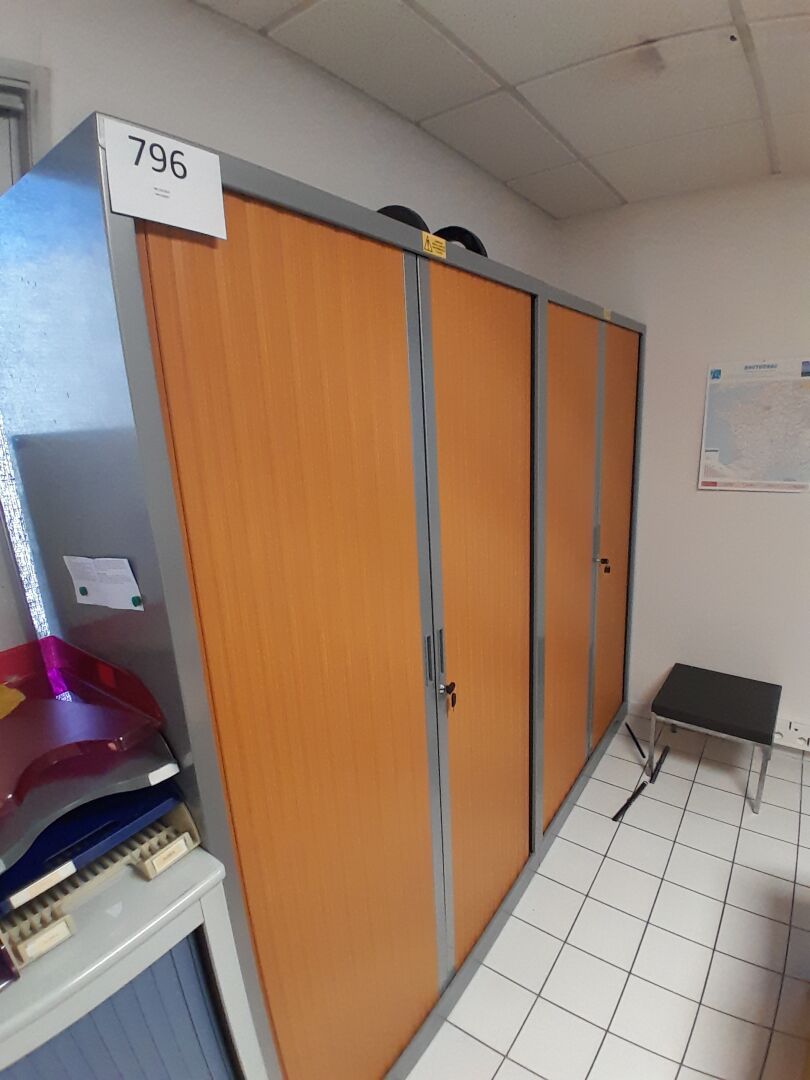 1 meuble mi-hauteur métal gris à rideau coulissant façon bois L 120 P 43 H 100 cm