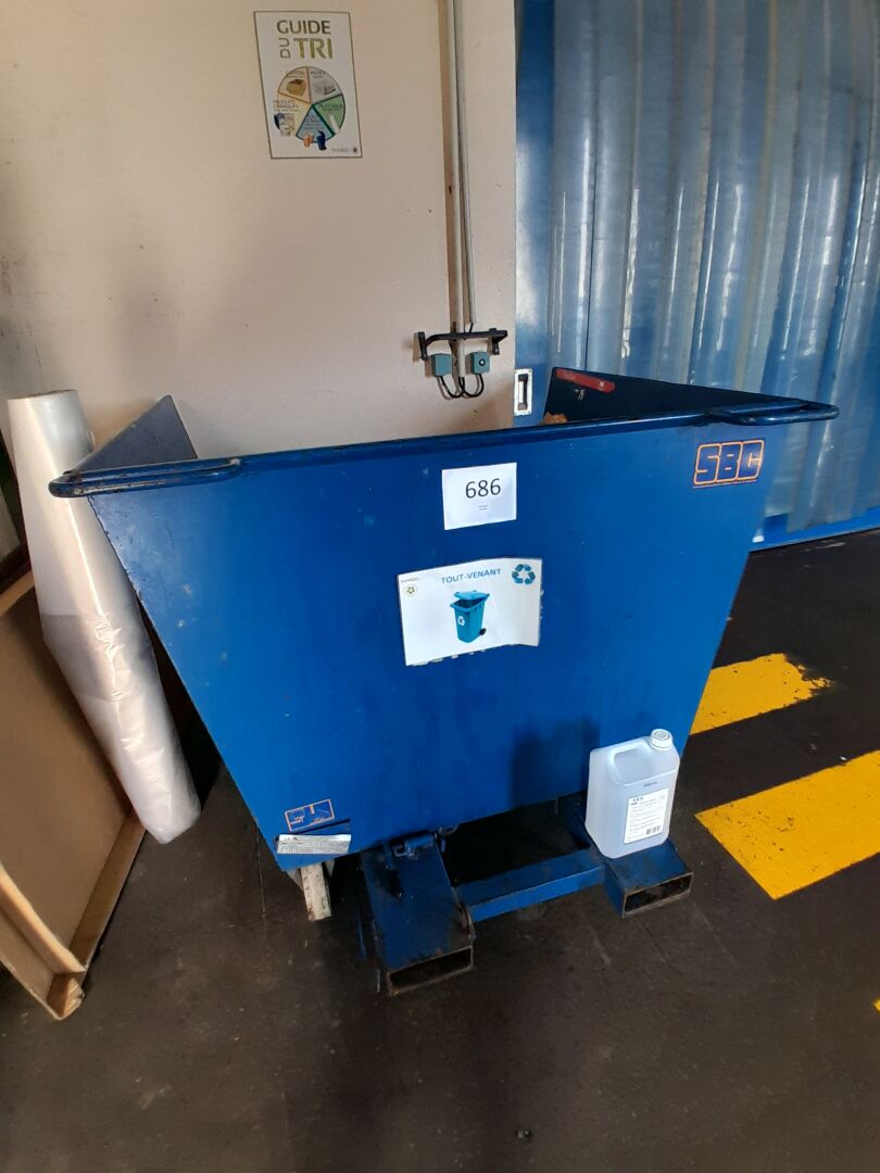 1 benne mobile métal bleu prise de fourche SBC basculante 1500 litres, PV 300 KG