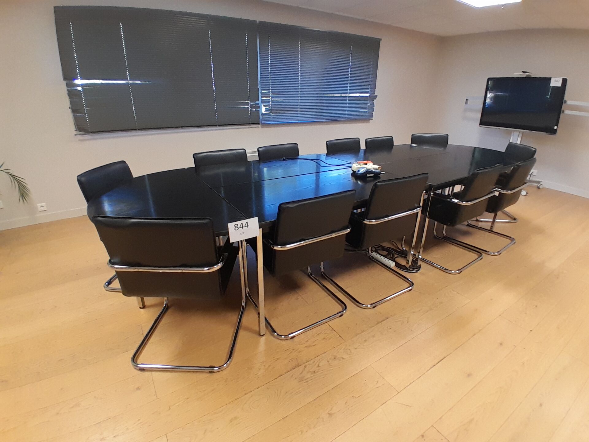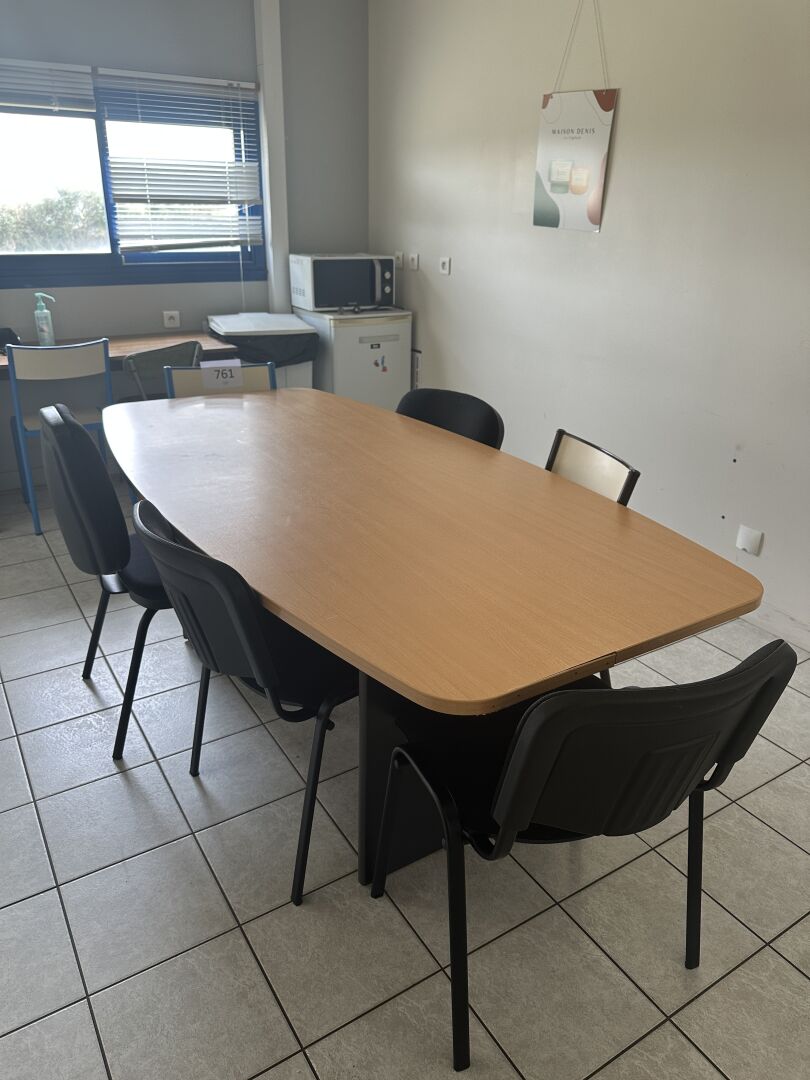 1 table de réunion 6 modules mélaminé façon bois noir : 4 tables (L 140 P 70 cm) + 2...