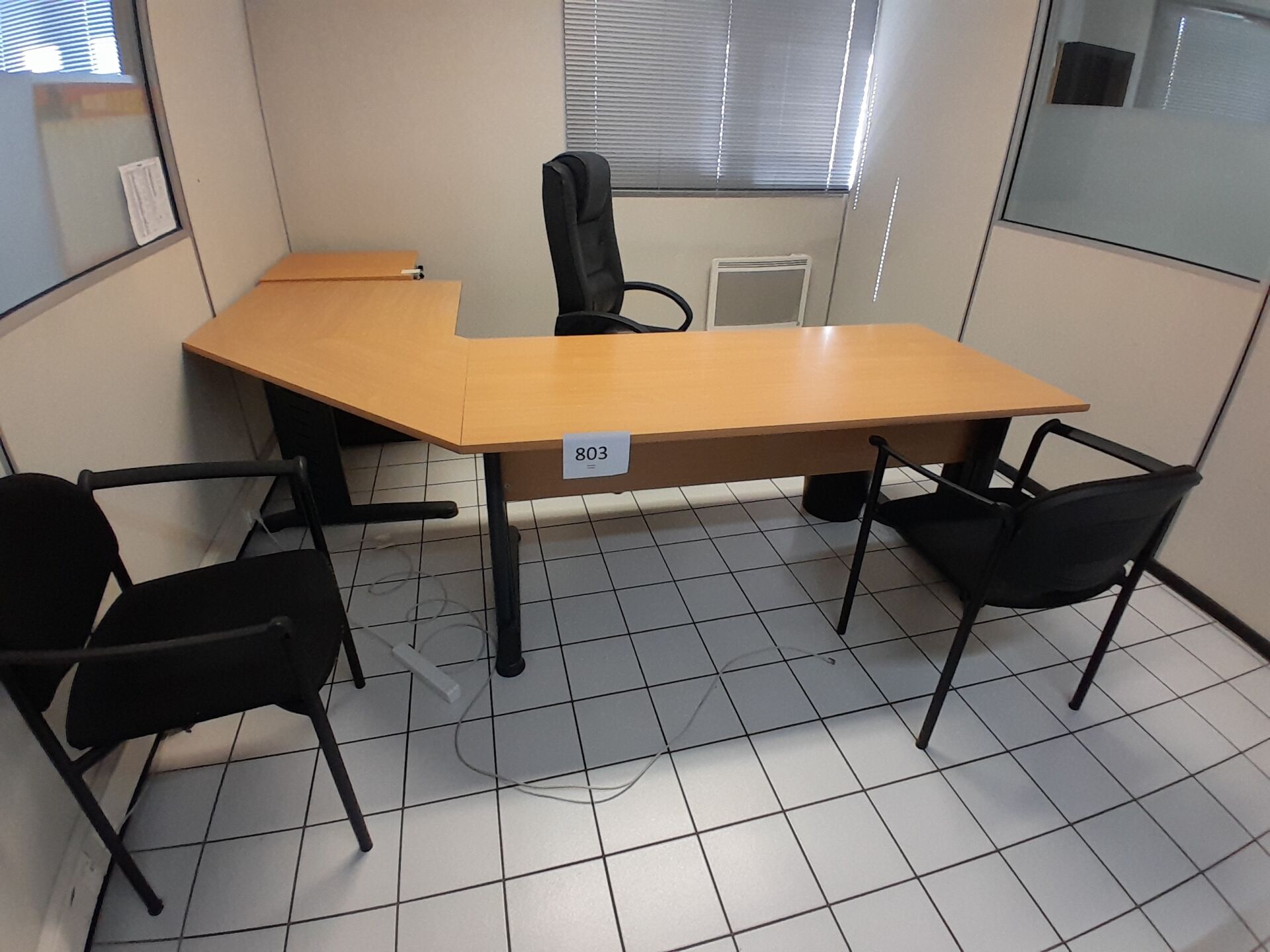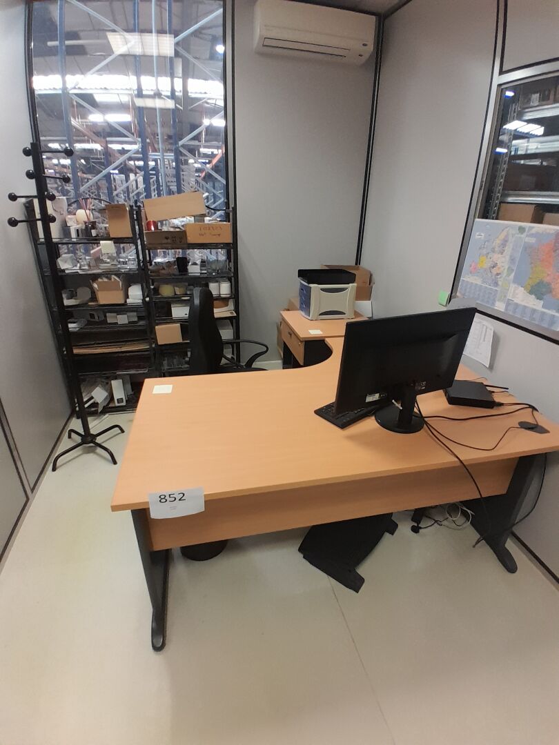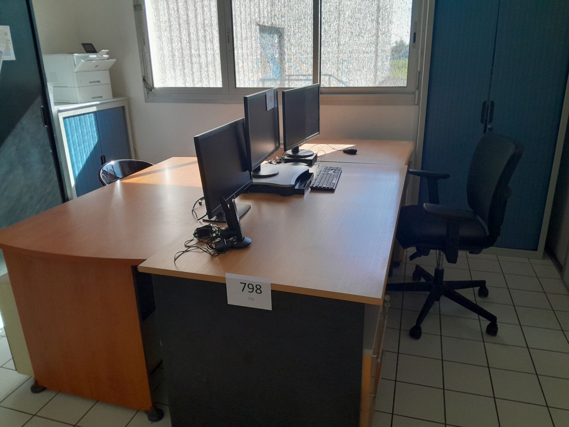 3 bureaux mélaminé façon bois 210 X 95 cm et 160 x 80 cm + 1 meuble bas 2 portes vitrées...